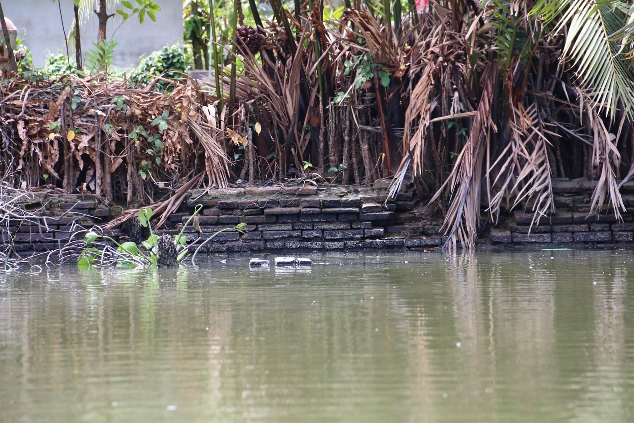 ชาวบ้านแถบนั้นซึ่งเป็นชุมชนมุสลิม แต่จะเป็นมุสลิมที่เพิ่งโยกย้ายจากทางสุพรรณ และเพชรบุรีเข้ามาใหม่เมื่อราว 80 ปีก่อน แนะนำให้พี่โกมลไปดูแนวอิฐริมคลองหลังบ้าน แนวอิฐดังกล่าวอยู่ในกอต้นจากค่อนข้างรกเรื้อ บางส่วนจมยื่นเข้าไปในคลองท่าซัก