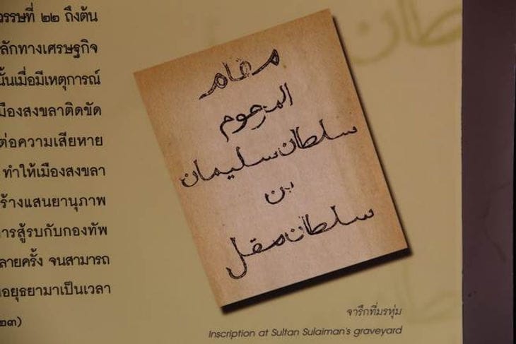“ผู้กลับไปสู่ความเมตราของพระผู้เป็นเจ้า สุลฎอนสุไลมาน มีอำนาจ ผู้บังคับบัญชา (?) นครรัฐมลายูสงขลา”