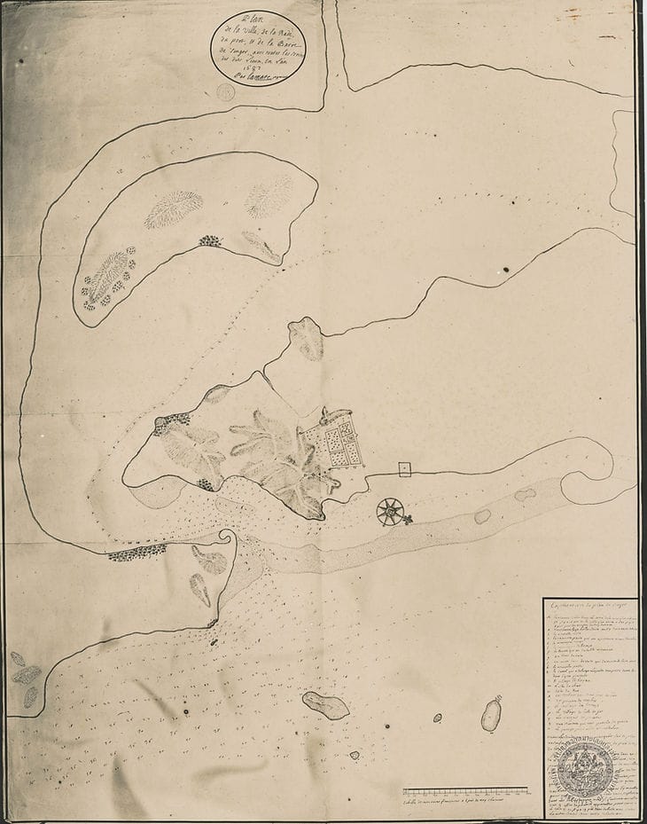 แผนที่เมืองสงขลา และบริบท เขียนโดยวิศวกรฝรั่งเศสที่สมเด็จพระนารายณ์ส่งลงมาวางแฝนฟื้นฟูเมืองหลังการพิชิตของอยุธยา