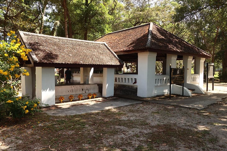 “…บ่ายสี่โมงเราได้ตามเสด็จไปขึ้นที่หาดแก้ว เสด็จไปทอดพระเนตรมรหุ่มที่ฝังศพแขกแต่โบราณ มีจารึกด้วย มีหลังคาอยู่สองศพ ศพหนึ่งเป็นเจ้า ศพหนึ่งอาจารย์ ได้ยินว่าชาวเมืองถึงไม่ได้เป็นแขกก็นับถือ เสด็จกลับมาถึงเรืออุบล เรือออกจากเมืองสงขลาเกือบทุ่ม…[๘]