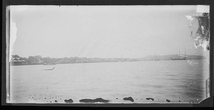 ”…วันที่ ๒๒ เกือบโมงเช้าจึงได้ออกเรือ เพราะต้องกาหลกันในการที่จะพ่วงเรือไป เรือกลไฟน้ำตื้นที่จะไปในทเลสาปได้มีสามลำ คือเรือทอนิครอฟต์ลากเรือที่นั่งทรงที่นั่งรองผ้านุ่งห่มรวม ๔ ลำ เรือเซนต์ยอชลากเรือเจ้านายและเรือผ้านุ่งห่ม เรือครัวรวม ๕ ลำ เรือยาโรลากจูงเรือเครื่องเปนเรือหัวเมืองลำใหญ่ ๆ ๓ ลำ ต้องเดิรตามร่องน้ำลึกไปจนถึงน่ามะระหุ่ม จึงเลี้ยวกลับเข้าปากช่องแหลมทรายเสียเวลาชั่วโมงหนึ่ง ได้เห็นป้อมเขาแดงและป้อมค่ายม่วงที่เขาแหลมสน…”[๙]