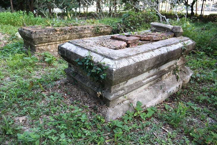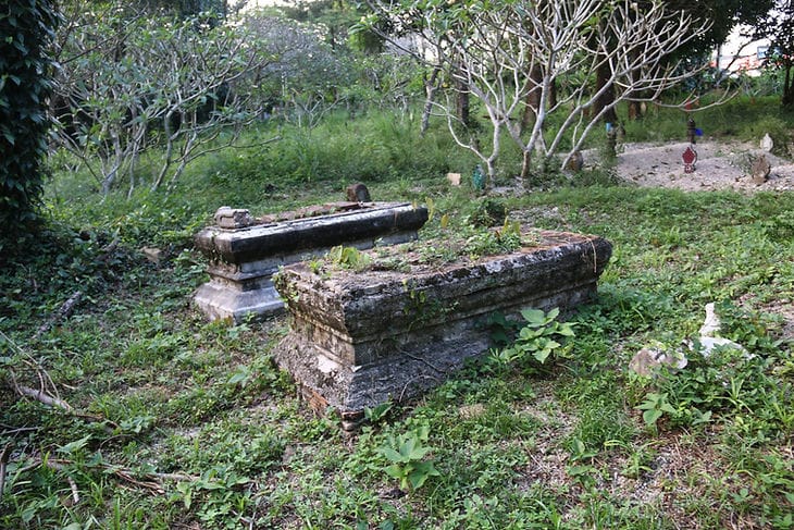 สุสานสุลต่านสุไลมาน (โต๊ะหุม) เจ้าผู้คลองเมืองสงขลาหัวเขาแดงร่วมสมัยกับพระเจ้าปราสาททองของอยุธยา (หลังขวา) บนหลุมมีการก่ออิฐมีลักษณะเหมือนโล่งศพ