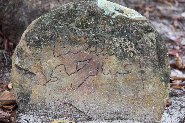 เครื่องหมายบนหลุ่มศพที่มีการจารึกว่า “ตาหนา” จารึกทั้งหมดเขียนด้วยภาษามลายูอักษรยาวี อ่านได้ว่า
