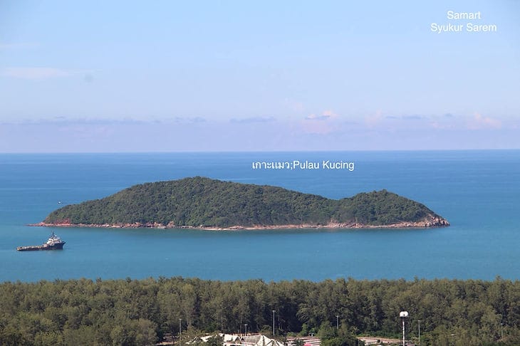 ส่วนเกาะแมวซึ่งมีขนาดเล็กกว่านั้นปรากฏอยู่ในแผนที่มาตั้งแต่ราวพุทธศตวรรษที่ 23 เช่นกัน แต่การระบุชื่อเกาะแมวนั้นปรากฏอย่างช้าในราวกลางพุทธศตวรรษที่ 24 ในแผนที่เมืองสงขลาและระยะทาง (ทะเบียนหอสมุดแห่งชาติ : สมุดไทยเลขที่ ๙๖ แผนที่เมืองสงขลาและระยะทาง) เขียนขึ้นในรัชกาลที่ ๓ โดยพระยาวิเชียรคีรี (เถี้ยนเส้ง) เจ้าเมืองสงขลาขณะนั้นระบุชื่อ เขาตังกวน เกาะหนู และเกาะแมว ในเส้นทางจากสงขลาไปยังกรุงเทพมหานคร [๑]