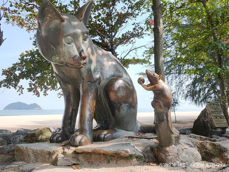 เกาะหนู เกาะแมว เกาะที่ตั้งอยู่หน้าปากทะเลสาบสงขลา มีเรื่องเล่ามุขปาถะว่าแต่เดิมนั้นเกาะทั้งสองเกิดจากน้องหนู และน้องแมวที่เป็นสัตว์มีชีวิตจริง ๆ สัตว์ทั้งสองอยู่บนเรือของคหบดีชาวจีนที่ล่องเรือค้าขายไปมาระหว่างเมืองจีนกับเมืองสงขลา คหบดีมีลูกแก้ววิเศษที่สามารถทำให้ผู้ครอบครองลอยน้ำได้ หนูและแมวจึงวางแผนร่วมกับสุนัขบนเรือคิดขโมยลูกแก้วดังกล่าวเพื่อใช้หนีกลับมาเมืองสงขลา สัตว์ทั้งสามเมื่อขโมยลูกแก้วมาได้ก็แย่งชิงกัน หนูและแมวสิ้นชีวิตในทะเล เกิดเป็นเกาะหนู และเกาะแมว สุนัขซึ่งเป็นสัตว์เพียงตัวเดียวที่สามารถว่ายขึ้นมาพ้นจากทะเลได้กลายเป็นเขาตังกวน ส่วนลูกแก้วได้กลายเป็นหาดแก้วอยู่ในอำเภอสิงหนครในปัจจุบัน นิทานดังกล่าวเป็นความพยายามที่จะอธิบายภูมิสถานบริเวณปากทะเลสาบสงขลาให้ร้อยเรียงกันภายใต้ปรัมปราคติ เรายังไม่รู้แน่ชัดว่าการผูกนิทานเรื่องนี้เกิดขึ้นเมื่อใด