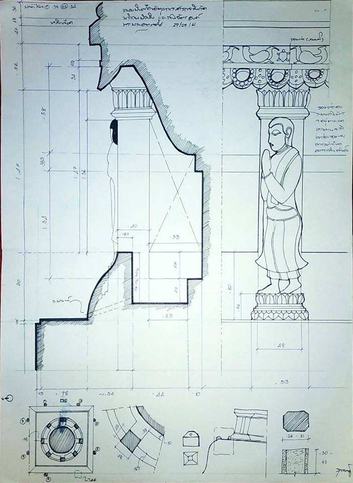 2.ตรวจสอบบริเวณบัลลังก์ กับพระเวียนที่เป็นรอยต่อของงานช่างสมัยศรีธรรมาโศกกับอยุธยา