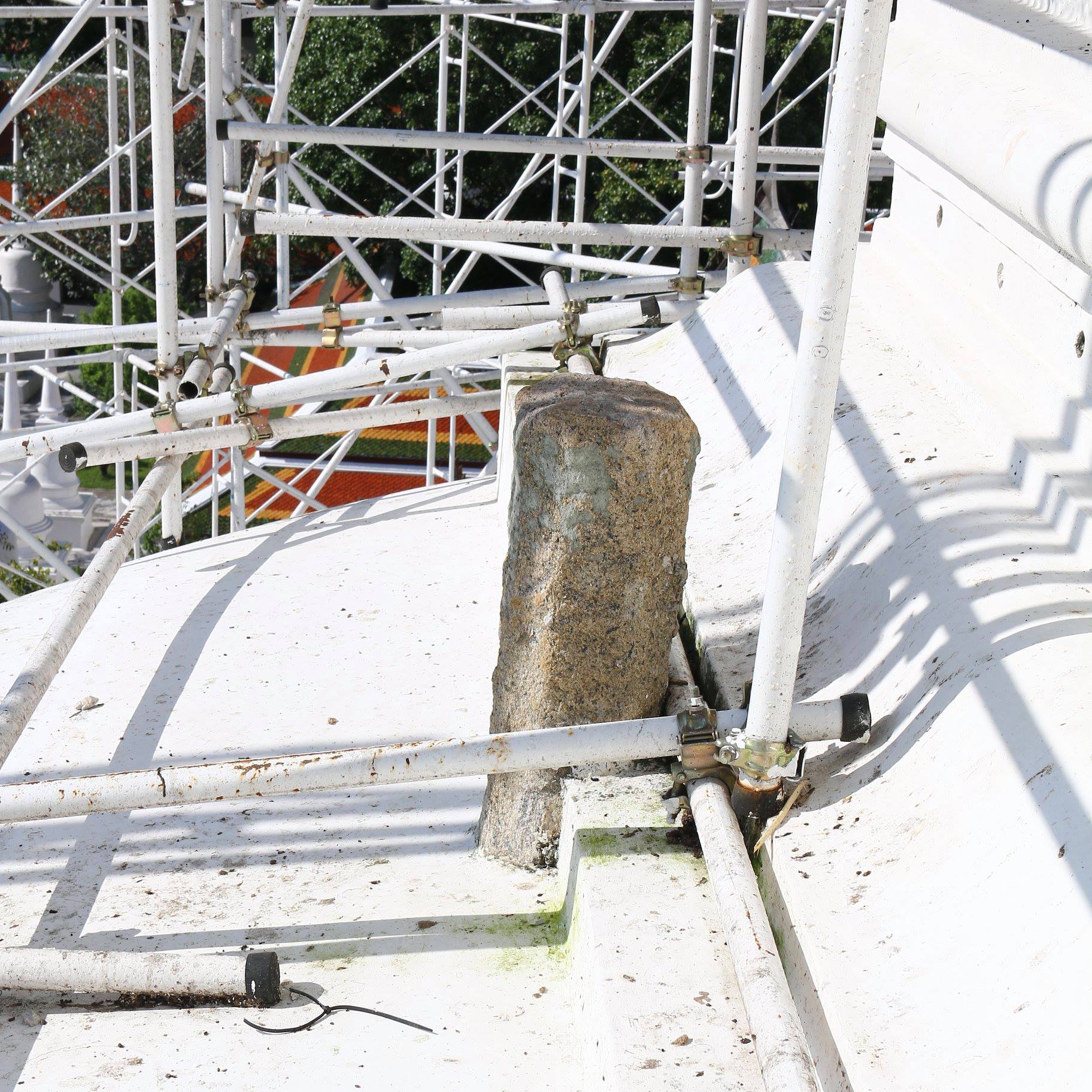 หมายเหตุ โพสต์นี้ผมปรับปรุงจากบันทึกสนาม เนื้อความข้างจะยาวจะตัดเป็นสองตอน คือตอนข้อสังเกตภาคสนามเรื่องเสายูปะ กับตอนข้อสังเกตเรื่องพระเวียน ระบายฉัตรโลหะครับ หลายเดือนก่อนผมมีโอกาสได้รับใช้พระครูเหมเจติยาภิบาล ช่วยเก็บข้อมูลงานศิลปกรรม งานสถานปัตยกรรมในวัดพระบรมธาตุนครศรีธรรมราชอยู่เป็นระยะสั้น ๆ มีสโคปงานบางส่วนที่เกี่ยวข้องกับพระบรมธาตุเจดีย์โดยตรงที่ผมเลี่ยงใช้ทางอ้อม ๆ อยู่นานในการศึกษาองค์ประกอบส่วนที่อยู่สูงขึ้นไป เนื่องจากด้วยความที่เป็นลูกหลานชาวนคร เราตระหนักดีว่าพระบรมธาตุนั้นเป็นของศักดิ์สิทธิ์เพียงไร การขึ้นนั่งร้านไปด้านบนนั้นไม่ใช่เรื่องสนุกนัก ไม่ใช่เพียงในแง่ของระเบียบกฏหมาย แต่เป็นความรู้สึกไม่เหมาะควรที่ผู้ใหญ่สอนอยู่เสมอ แต่ยังคงมีเรื่องน่าสนใจอยู่หลายจุดที่สอบถามพระอาจารย์ หรือช่างที่ขึ้นไปแล้วไม่ได้ความเท่าที่ต้องการ