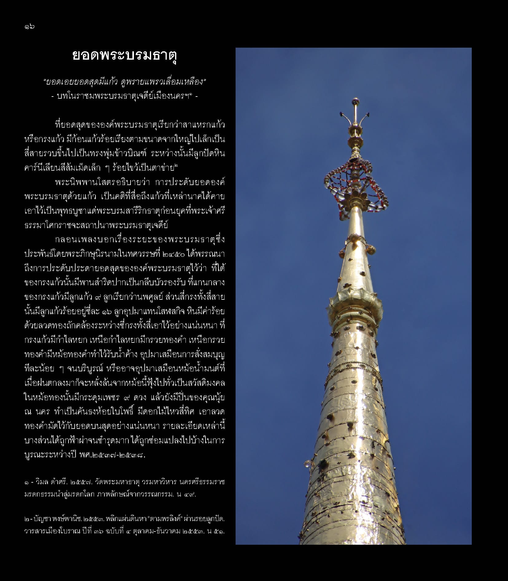 เรื่ององค์ประกอบต่าง ๆ ของพระบรมธาตุนครโปรดดู – กระบวนพระศรีรัตนมหาธาตุ : คำบรรยายลักษณะแห่งพระบรมธาตุเจดีย์เมืองนครศรีธรรมราช จากเอกสารสมัยอยุธยา https://www.facebook.com/photo.php?fbid=10210867945533388