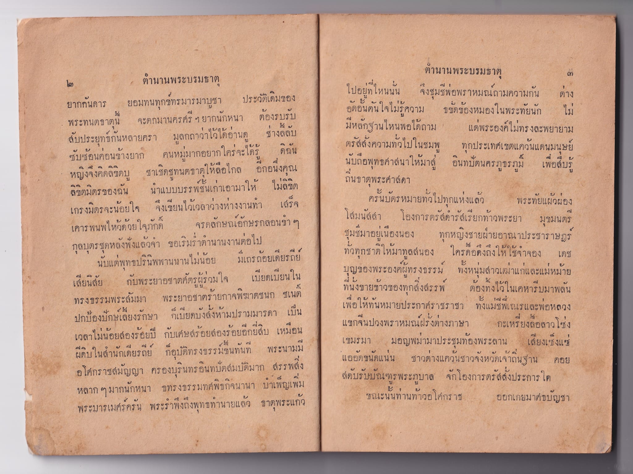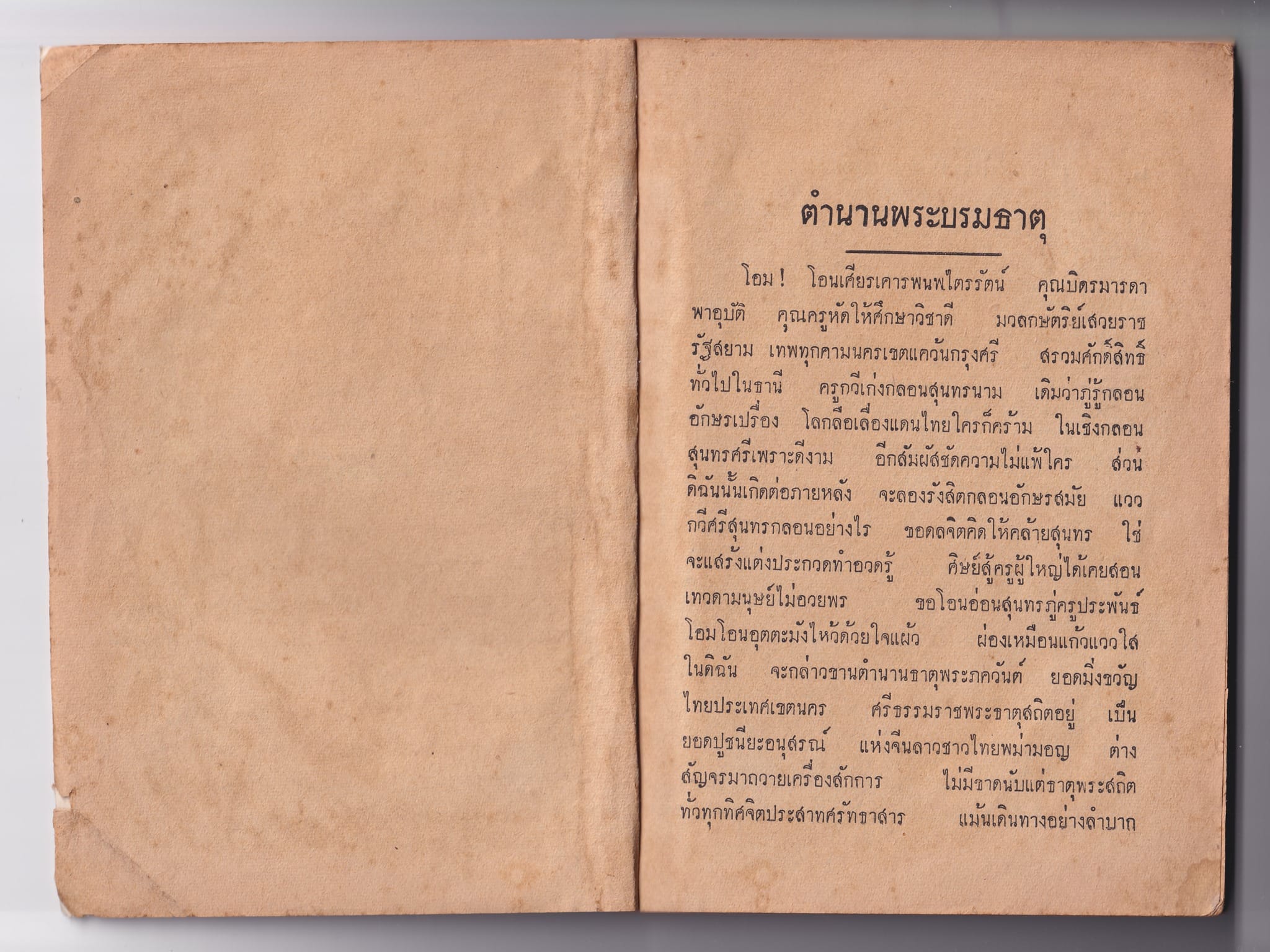 ตำนานพระบรมธาตุนครศรีธรรมราช ฉบับ “ศ.ว.ต.ล.” พิมพ์เมื่อ มิถุนายน ๒๕๐๖ ตำนานพระธาตุเล่มนี้เป็นสำนวนร้อยกรอง มีมิตรสหายแนะนำมาว่าเค้าลงขายในเน็ต ผมดูแล้วสำนวนกลอนแปลก ๆ ชอบกลไม่เหมือนตำนานพระธาตุร้อยกรองสำนวนอื่นที่เคยอ่านอย่างพระนิพพานโสตร และพระศรีธรรมาโศกกลอนสวด แล้วก็พิมพ์ในปี 2506 เพิ่งฟังคุณหมอบัญชาบิวด์มาว่า 2506 เป็นหมุดหมายสำคัญของการเปลี่ยนแปลงรูปแบบงานเดือนสิบ รวมถึงอยู่ในช่วงที่นายสันต์ เอกมหาชัย เป็นผู้ว่าราชการจังหวัดนครฯ ซึ่งดูจะเกิดโมเมนต์น่าสนใจเกี่ยวกับประวัติศาสตร์ วัฒนธรรม เมืองนครหลาย ๆ ประการ ก็เลยดีลกับคนขายได้มาในราคา 100 กว่าบาทเท่านั้นเอง มิตรสหายมาบอกภายหลังว่าไม่น่าแนะนำผมเลย กะว่าจะได้ซื้อมาขายผมอัพราคา (ดูมันครับท่านผู้ชม)