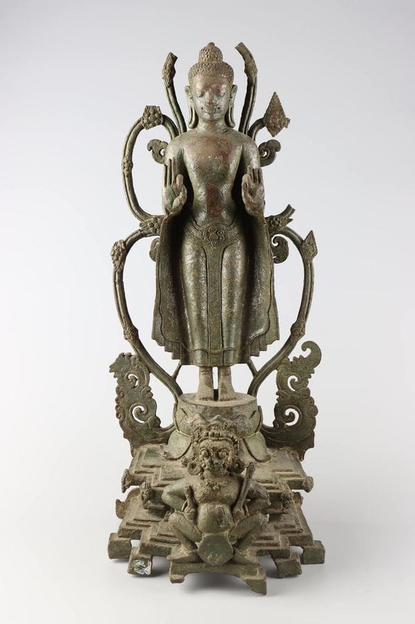 ศ.ดร.พิริยะ ไกรฤกษ์ บอกกับผมตอนท่านพาคณะมาเที่ยวดูที่เมืองนครเมื่อหลายเดือนก่อน เมื่อมานึกถึงข้อเสนอของคุณภูมิเรื่องพระพุทธรูปที่จันทรภานุศรีธรรมาโศกราชสร้างไว้ แม้ในเขตเมืองนครจะไม่เหลือพระพุทธรูปขนาดใหญ่ที่คงเค้าพระพักตร์เก่าแก่ไปถึงสมัยนั้นให้เราพอรู้เค้า แต่ในพระสำริดเท่าที่นึกออกแล้วพอจะเป็นไปได้ก็มีพระพุทธรูปองค์นี้ที่น่าจะร่วมสมัย