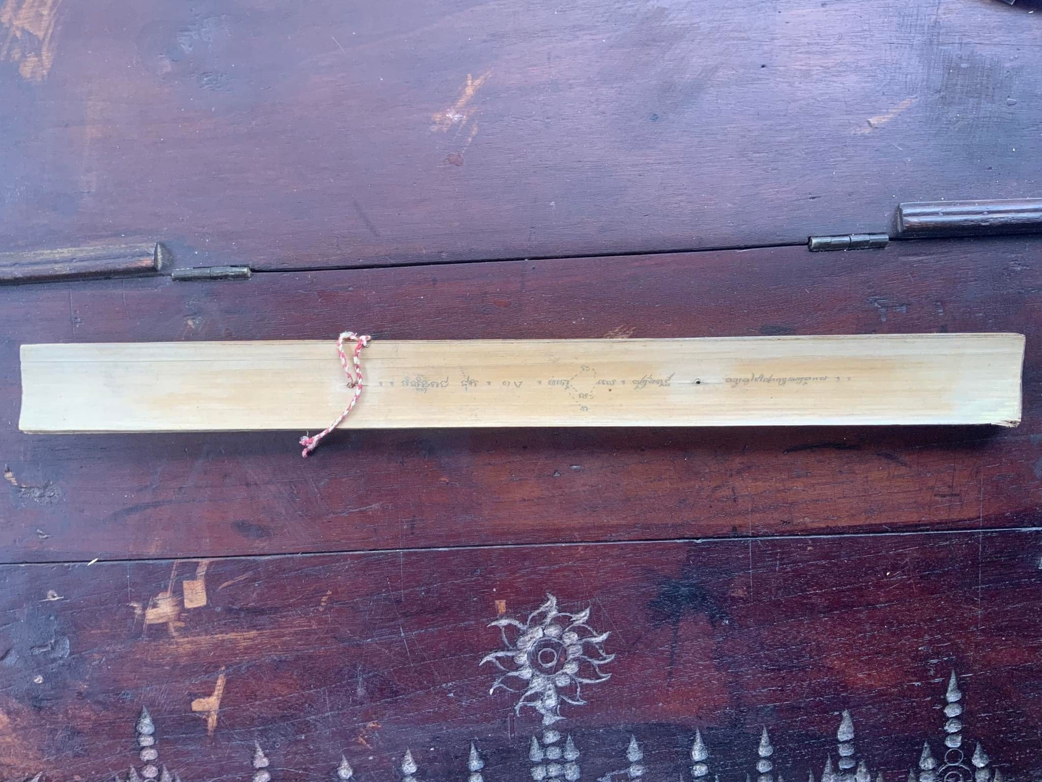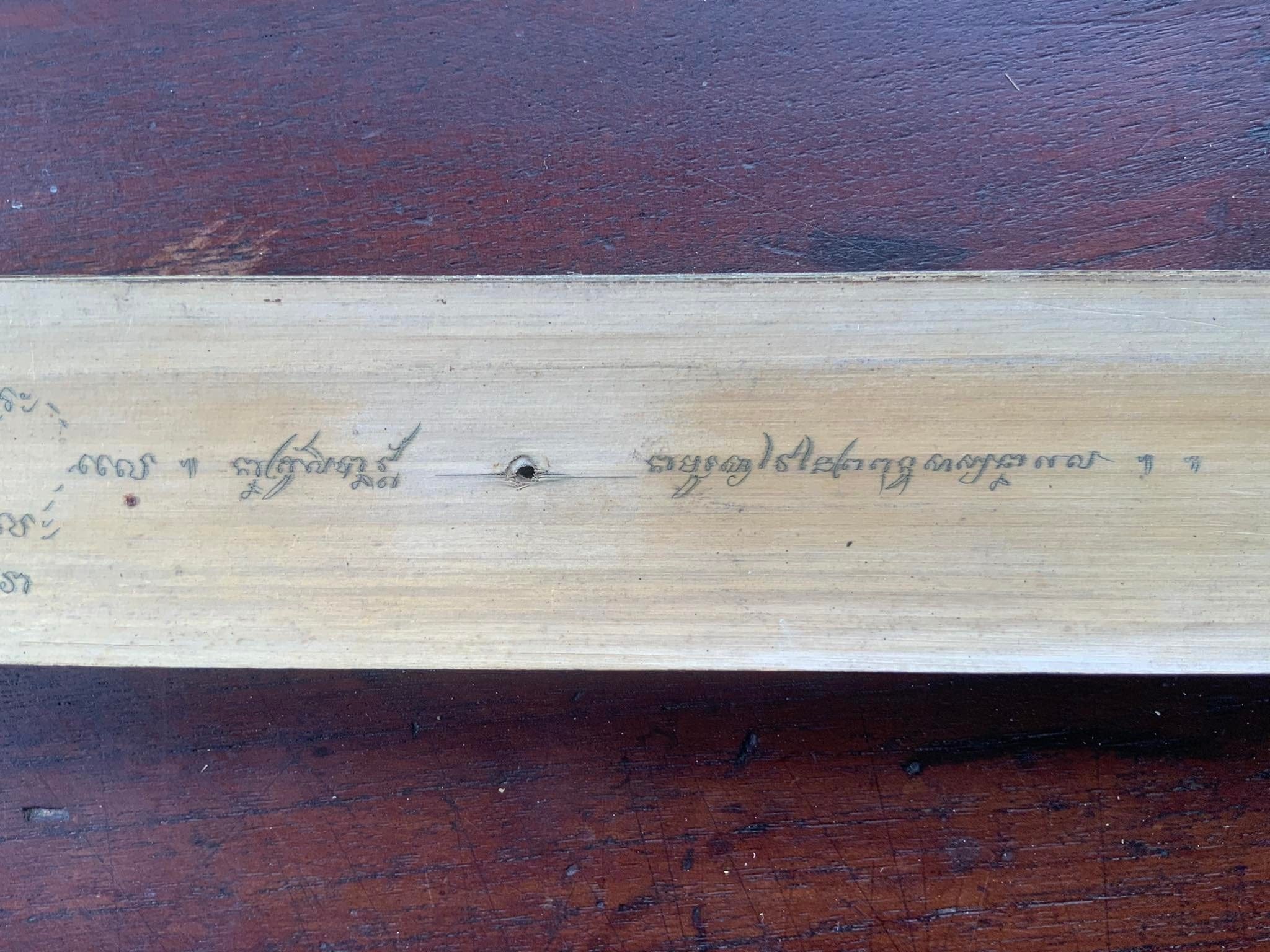 ระหว่างนั่งเฝ้ากุฎิรอผู้มาเยี่ยมชมในงาน Re-set ท่าวัง-ท่ามอญ ได้หยิบเอามัดลานของวัดมาทะยอยรีเชคกับทะเบียนเดิม และสำรวจ paratext บนลานที่จะให้ข้อมูลเรื่องชื่อ สถานที่ คำอธิษฐาน หรือวันเดือนปีที่จาร ได้พบลานอยู่ ๓ รายการ อยู่ในสภาพชำรุดมาก ๑ ผูก เหลือแต่ปกลาน ๑ ใบ เป็นคัมภีร์พระธรรมบท และที่สมบูรณ์อีก ๑ ผูกเป็นคัมภีร์มิลินทปัญหา ลาน ๓ รายการนี้พลัดแทรกอยู่กับลานเรื่องอื่น ๆ แต่มี paratext ตรงกันว่า