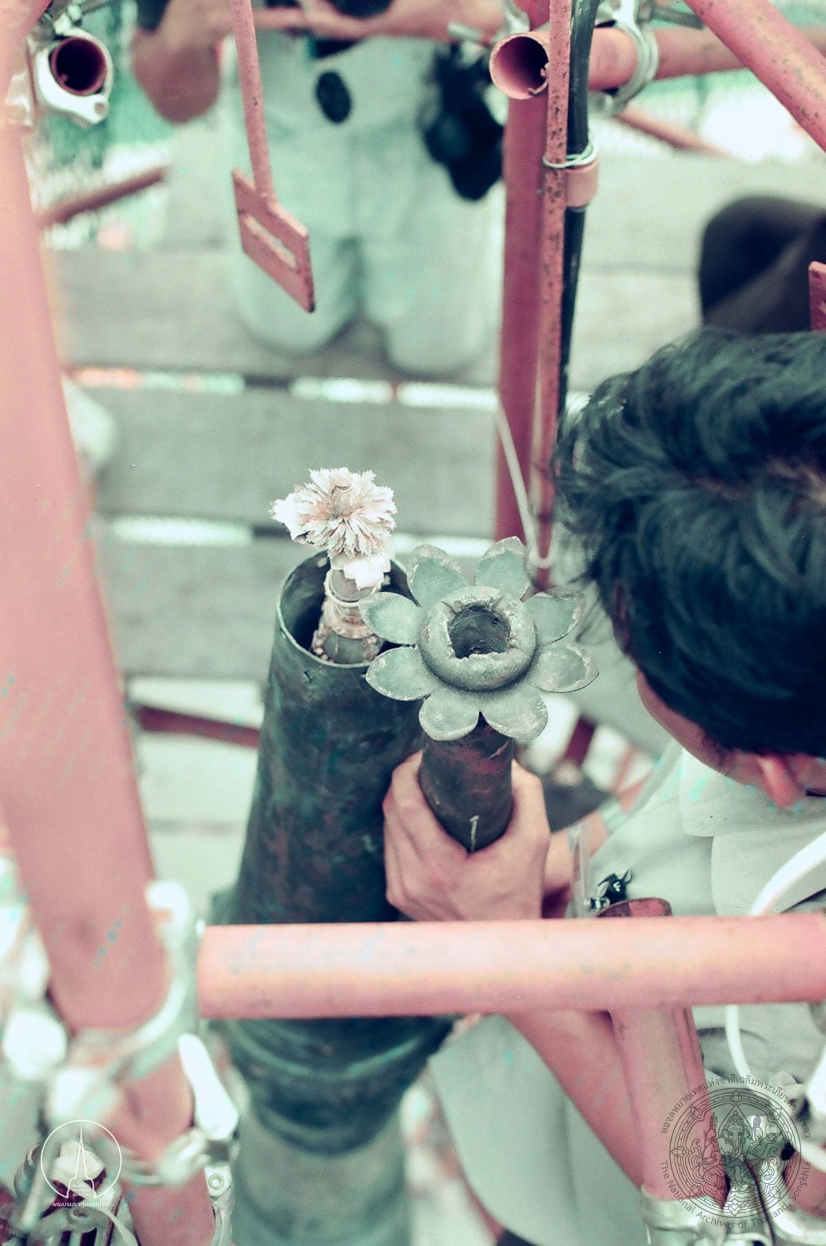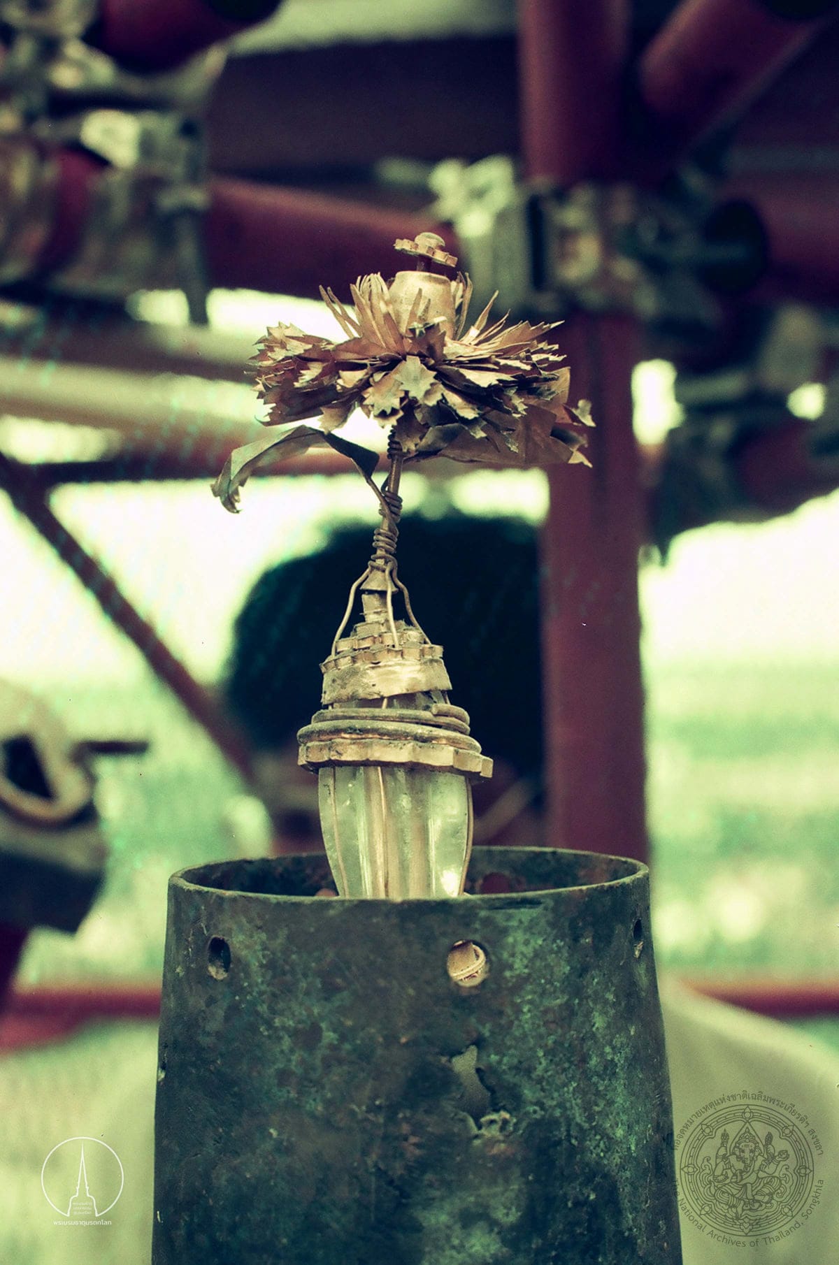 เอลเมนต์ของปทุมโกศที่ปรากฏอยู่เหนือลูกแก้วคั่นปลีนั้นจึงไม่ได้ถูกแทรกเข้ามาเป็นดีเทลโดด ๆ #แต่ทำหน้าที่พานของบายศรีปากชามทองคำ ต่างเครื่องบูชาพระธาตุที่ไม่มีวันบุบสลายโรยรา หากยอดพระธาตุยังไม่ปรักหักพังลงมาเครื่องบูชานี้ก็ยังคงได้รับการพิทักษ์อยู่ในปลีโลหะสืบไป