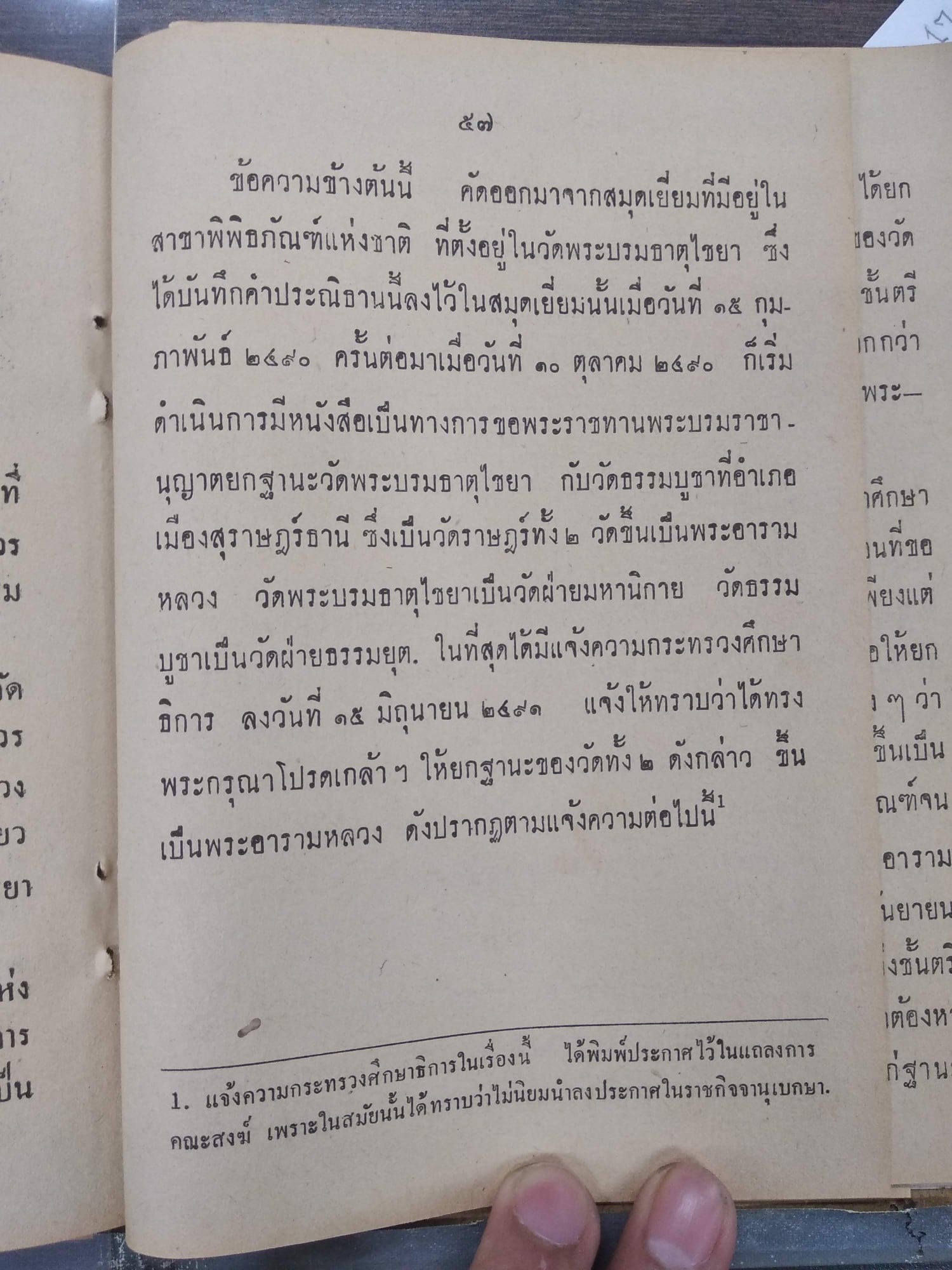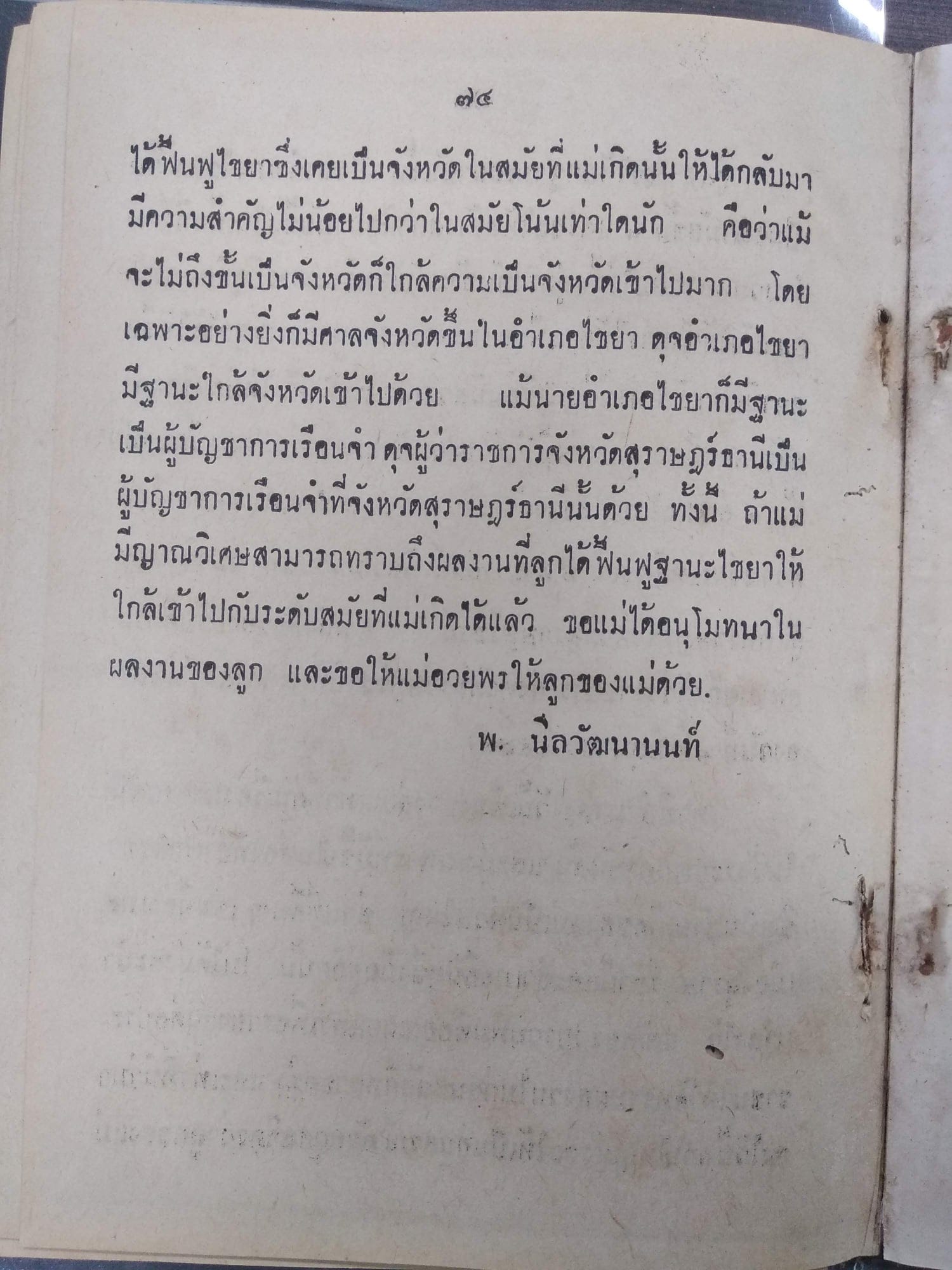 เคยถาม ๆ กับมิตรสหายว่า วัดพระบรมธาตุไชยา ได้ยกขึ้นเป็นพระอารามหลวงชั้นเอก ชนิด ราชวรวิหาร จากพระอารามหลวงชั้นตรี ได้ยังไงด้วยกระบวนการไหน ดูเหมือนว่าเรายังเข้าใจเหตุการณ์ ณ ขณะนั้นไม่ครบถ้วนแจ่มชัดเท่าไหร่ ได้มาอ่านเล่มนี้ซึ่งถ่ายภาพมาจากหอจดหมายเหตุพุทธทาส อินทปัญโญ ชื่อ อนุสรณ์ คุณแม่ล้อม นีลวัฒนานนท์ ๑๑ กรกฎาคม ๒๕๑๐ เลขทะเบียน BIA-P.1/60-17