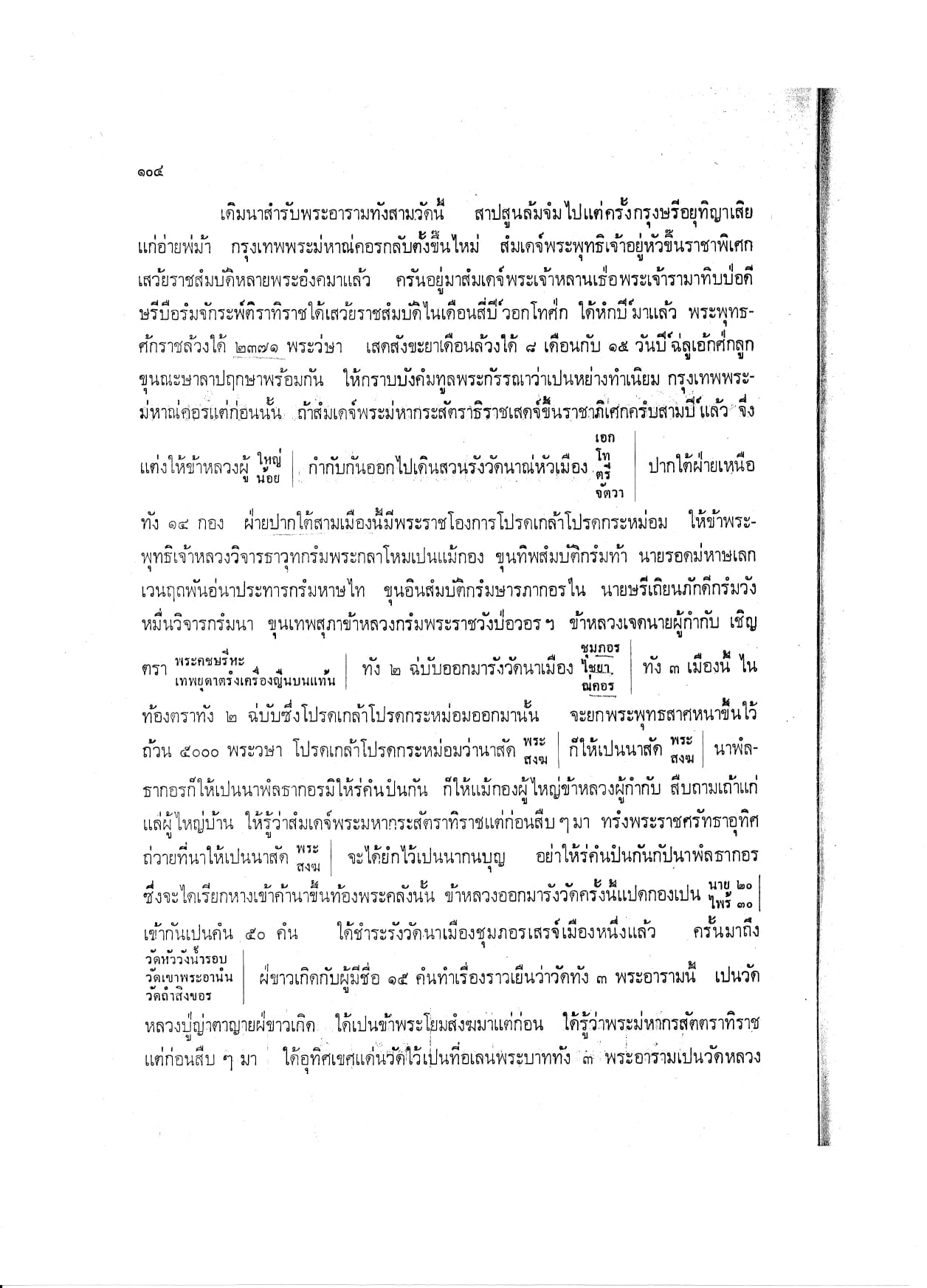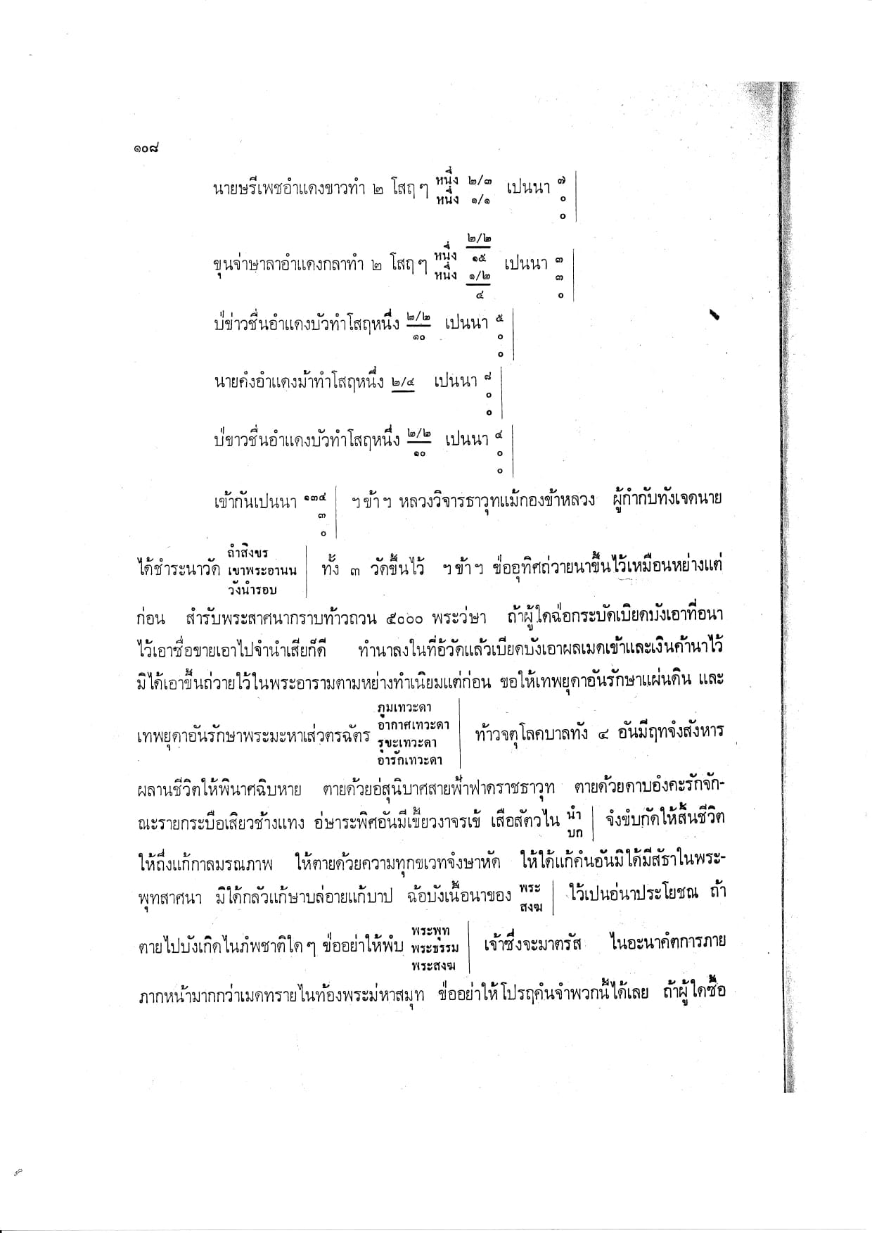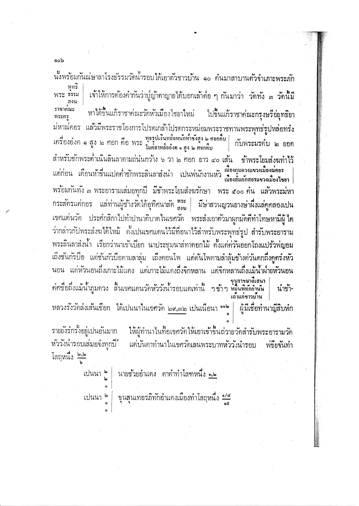 …แล้วมีพระบรมราชโองการโปรดเกล้าโปรดกระหม่อมพระราชทานพระพุทธรูปหล่อทรงเครื่ององค์ ๑ สูง ๒ ศอก คือพระพุทธรูปเงินหล่อหนักห้าชั่งสูง ๒ ศอกคืบ พระโมคลานหล่อองค์ ๑ สูง ๒ ศอกคืบ
