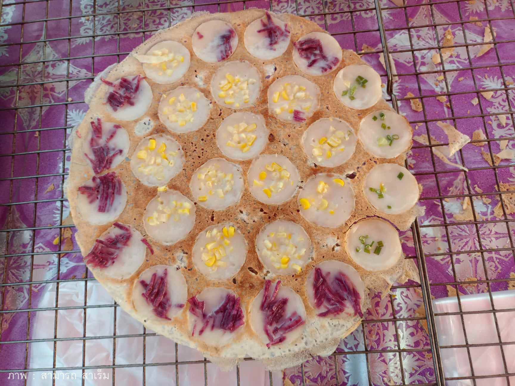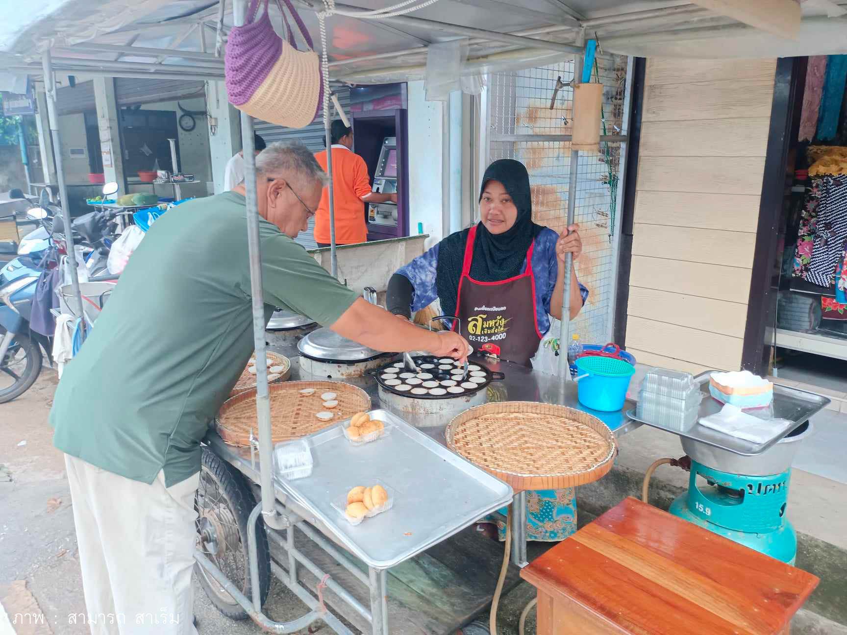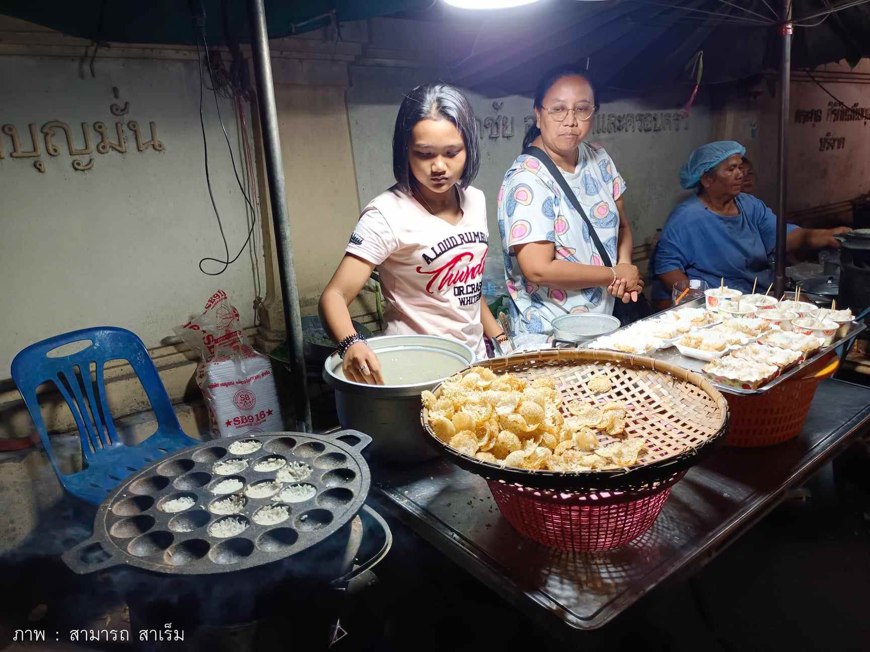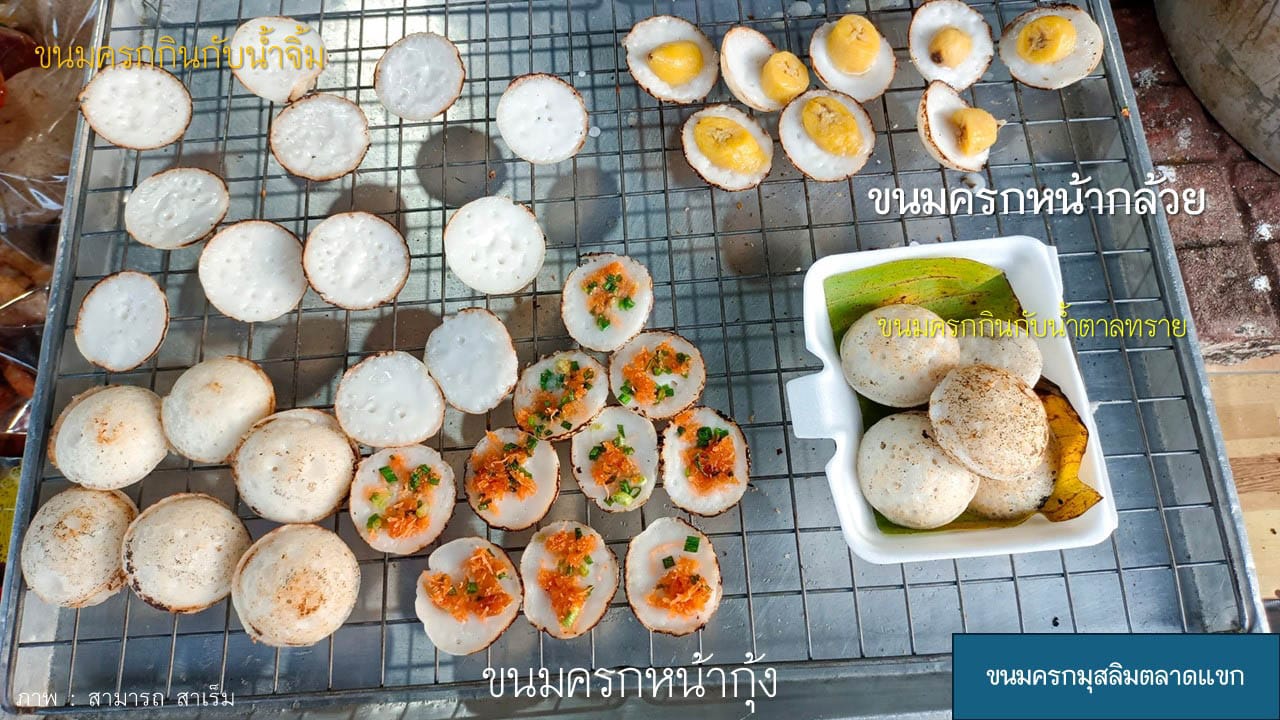 ขนมครกน้ำแกง สูตรมุสลิมบ้านทะเลนอก ตำบลหัวเขา อำเภอสิงหนคร จังหวัดสงขลาขายที่ตลาดนัดหน้าเมือง สิงหนคร