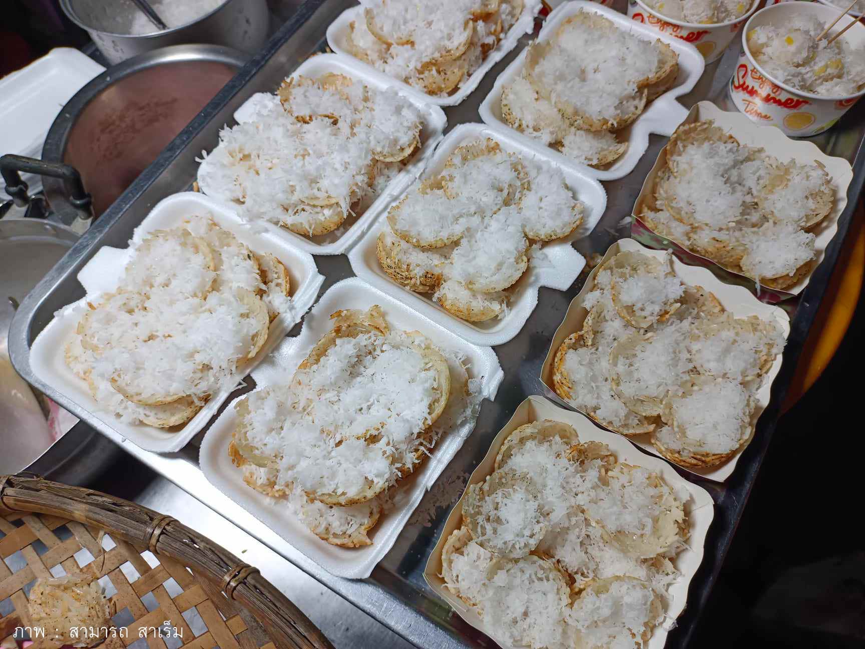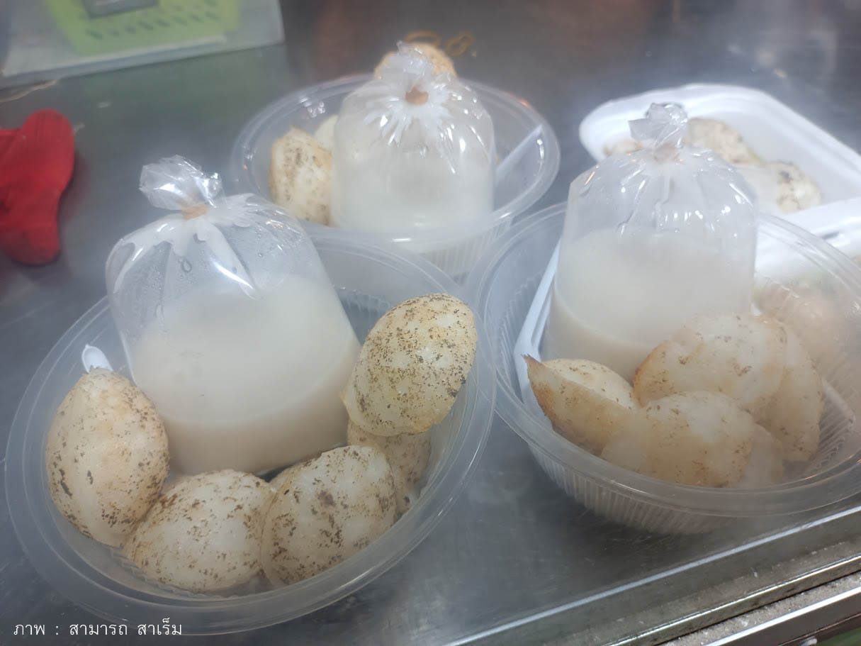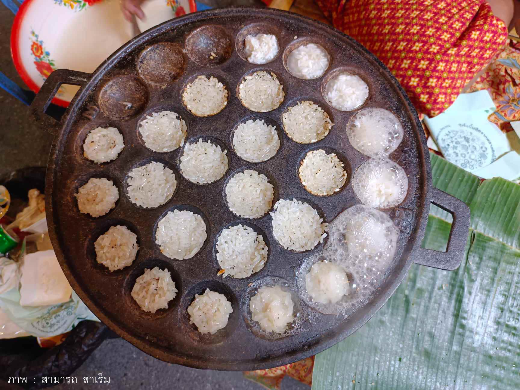 ขนมครกน้ำแกง สูตรมุสลิมบ้านทะเลนอก ตำบลหัวเขา อำเภอสิงหนคร จังหวัดสงขลาขายที่ตลาดนัดหน้าเมือง สิงหนคร