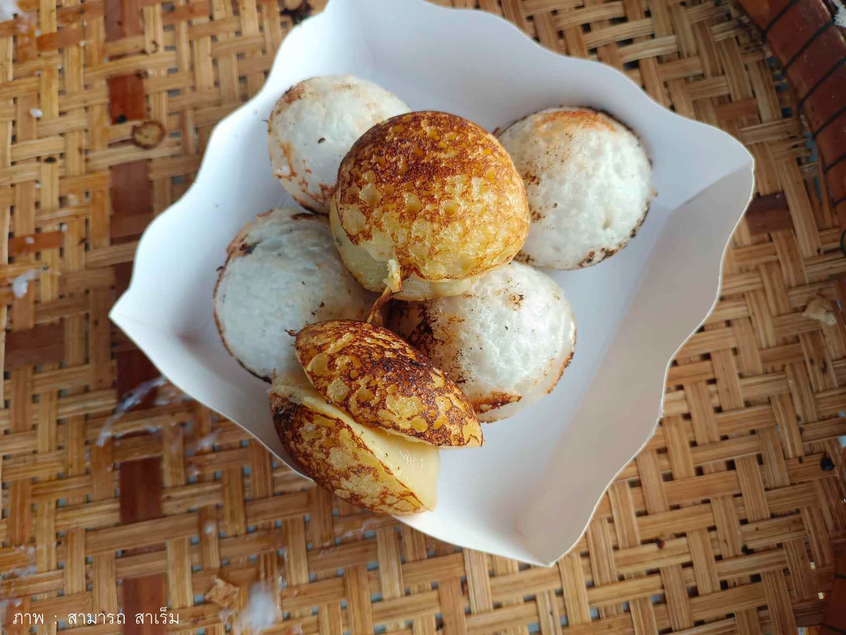 “…จากขนมครกธรรมดา เพียงเเค่เพิ่มไข่ไก่ลงไปผสมในแป้ง เพียงเเค่นี้ได้ขนมใหม่ หอมกลิ่นไข่…”