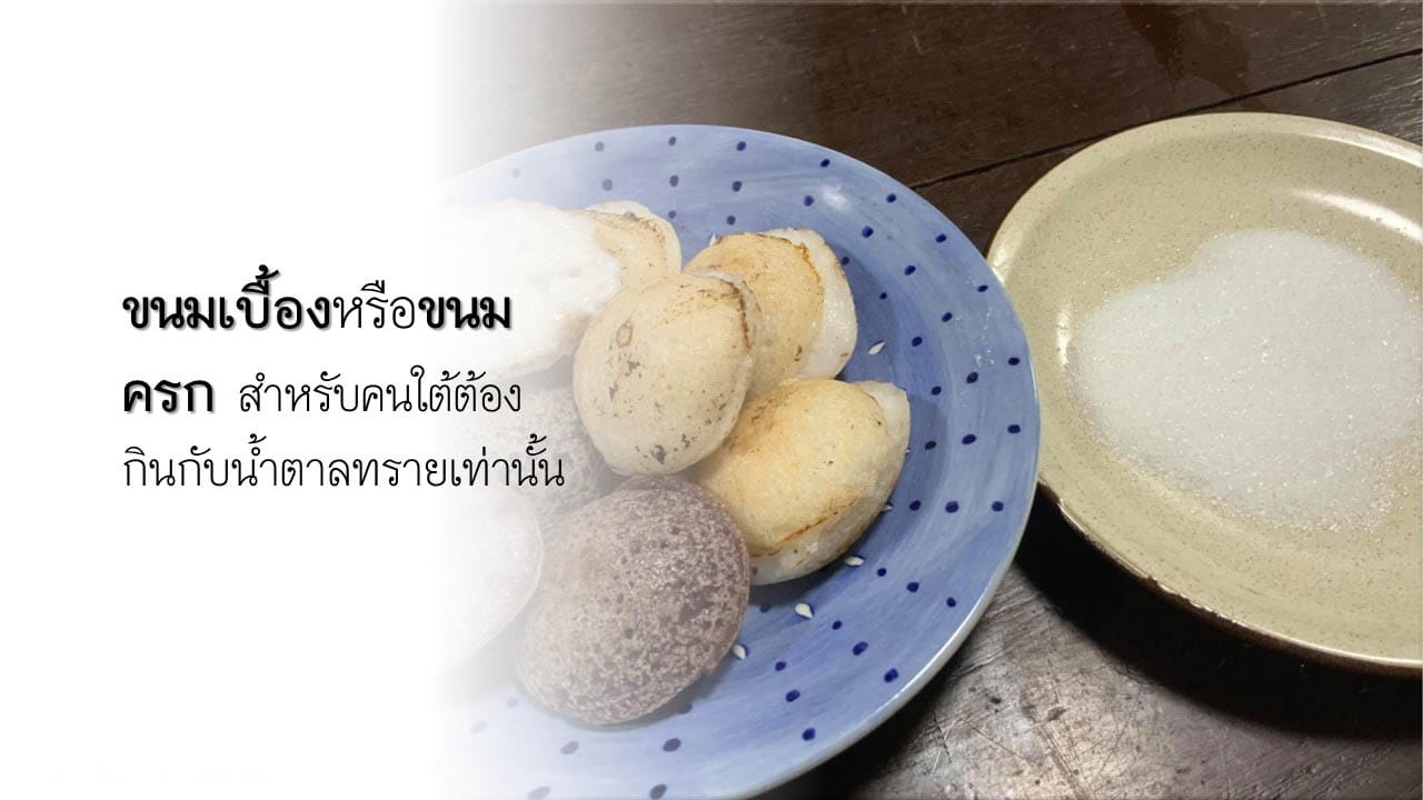 จะเห็นได้ว่าขนมครกในพื้นที่ภาคใต้นั้นมีความหลากหลายมากทั้งในมิติของชื่อเรียกเช่นกลุ่มคนที่ใช้ภาษาไทยถิ่นใต้เรียกว่า ขนมเบื้อง หรือ ขนมครก คนนายู(มุสลิมแกแจะนายู)เป็นภาษาเเม่ที่สามจังหวัดชายแดนใต้เรียกว่า ซาแบกูเวาะ ภาษามลายูกลางเรียก เซอราบี เป็นต้น และความเเตกต่างของส่วนผสม วัตถุดิบ และวิธีการกินเช่นเป็นขนมครกที่กินกับน้ำตาลทราย กินกับน้ำแกง เป็นต้น แล้วขนมครกที่บ้านของท่านผู้อ่านมีลักษณะแบบใดกันบ้างครับ ขอชวนมาเล่าสู่กันฟัง