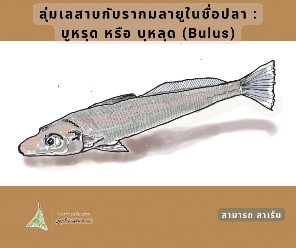 “บูหรุด” หรือ “บูหลุด” เป็นปลาอีกชนิดหนึ่งที่เรียกกันในลุ่มน้ำทะเลสาบสงขลา เป็นชื่อท้องถิ่นในหมู่บ้านของผู้เขียนที่บ้านควน ตำบลคูเต่า อำเภอหาดใหญ่ จังหวัดสงขลา หมู่บ้านชาวประมงที่หาอยู่หากินในทะเลสาบสงขลาตอนล่าง (เลใน) การเรียกดังกล่าวมีรากมาจากชื่อของปลาชนิดนี้ในภาษามลายูกลาง คือ “Ikan Bulus” อ่านว่า “อีกัน บูลุส” (อีกัน แปลว่า ปลา) ในขณะที่ภาษามลายูกลันตันเรียกว่า Ikae Buluh อ่านว่า “อีแก บูลุฮ์” ( อีแก แปลว่า ปลา ) [1]