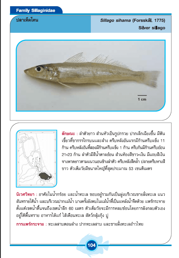 หนังสือปลาในลุ่มทะเลสาบ หนังสือชุดโครงการศึกษาและรวบรวมข้อมูลสารสนเทศและแผนที่ความหลากหลายทางชีวภาพและทรัพยากรทางทะเล ลุ่มน้ำทะเลสาบสงขลา (๒๕๕๒) เก็บข้อมูลเรื่องปลาชนิดนี้ในชื่อ “ปลาเห็ดโคน” มีชื่อวิทยาศาสตร์ว่า Sillago sihama (Forsskål, 1775) และมีชื่อภาษาอังกฤษว่า Silver Sillago พบแพร่กระจายในทะเลสาบสงขลาตอนล่าง ปากทะเล และชายฝั่งทะเลอ่าวไทย ตัวเต็มวัยจะมีการหลบซ่อนโดยการฝังกลบตัวเองอยู่ใต้พื้นทราย[6] ดังนั้นชื่อเรียกว่าปลาทรายในภาษาไทยอาจเป็นการเรียกตามลักษณะการอาศัยของปลาชนิดนี้ก็อาจเป็นไปได้