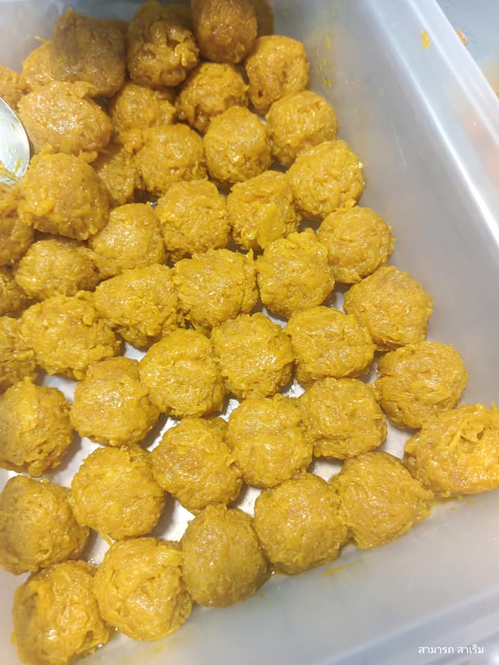 ขนมสีเหลืองหน้าตาชวนรับประทาน มีลักษณะเป็นเส้นม้วนเป็นก้อนกลมเหมือน “ขนมรังบวบ” รสชาติหวานชุ่มฉ่ำด้วยน้ำตาล รสสัมผัสละมุนลิ้น “วาบีอะ” (วา แปลว่า ป้า / บีอะคือชื่อ) คนขายมุสลิมบ้านหัวเขาบอกว่า “…รังบวบทำจากไข่ขาวที่เหลือจากเอาไข่แดงทำไข่เป็ดดองคู่…โพสให้มังขนมรังบวบของหัวเขาเรา…”