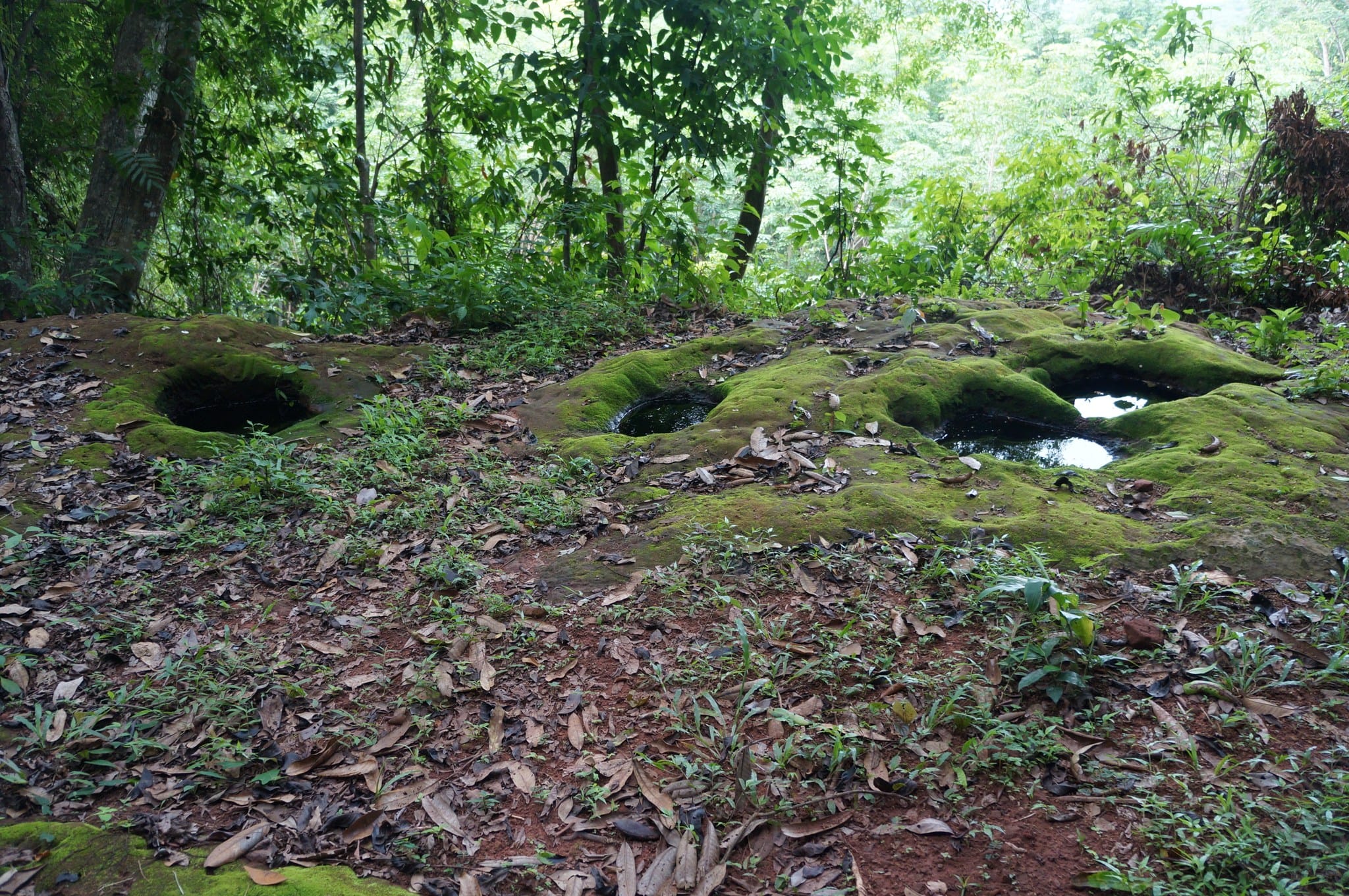 ด้านหน้าถ้ำเป็นลานหินมีหลุม ๆ เรียกกันว่าบ่อเจ็ดแห่ง เป็นหลุมน้ำขังเชื่อว่ามีสรรพคุณวิเศษ เคยใช้เป็นน้ำอภิเษกสมัย ร.9 หลุม ๆ เหล่านี้น่าจะคือหลุมเสาของอาคารขนาดใหญ่ที่เคยสร้างคลุมปากถ้ำนี้ในสมัยโบราณ เพราะหลุมส่วนใหญ่เรียงเป็นระบบกริดที่จะปักเสาไม้ขึ้นหลังคาคลุมได้ ที่หน้าผาหน้าถ้ำก็ดูมีการเซาะไว้หลายจุดที่จะฝากไว้โครงสร้างได้