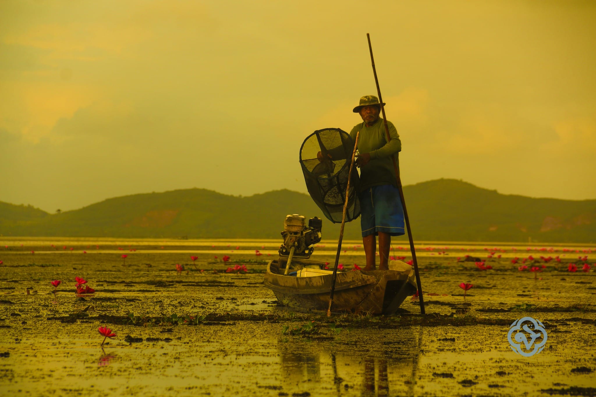 ชาวประมงลุ่มน้ำทะเลสาบสงขลาตอนบนที่บ้านเขาใน ตำบลเชิงเเส อำเภอกระเเสสินธุ์ จังหวัดสงขลากำลังยกไซอีลุ่ม ซึ่งใช้จับปลาลูกเหมะ