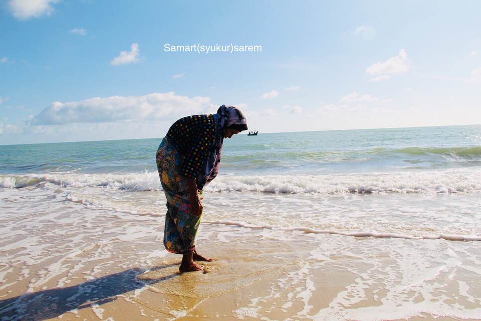 วะฉ๊ะ (วะมีความหมายว่า ป้า) กับหอยเสียบที่หาได้บนหาดทรายหน้าบ้าน