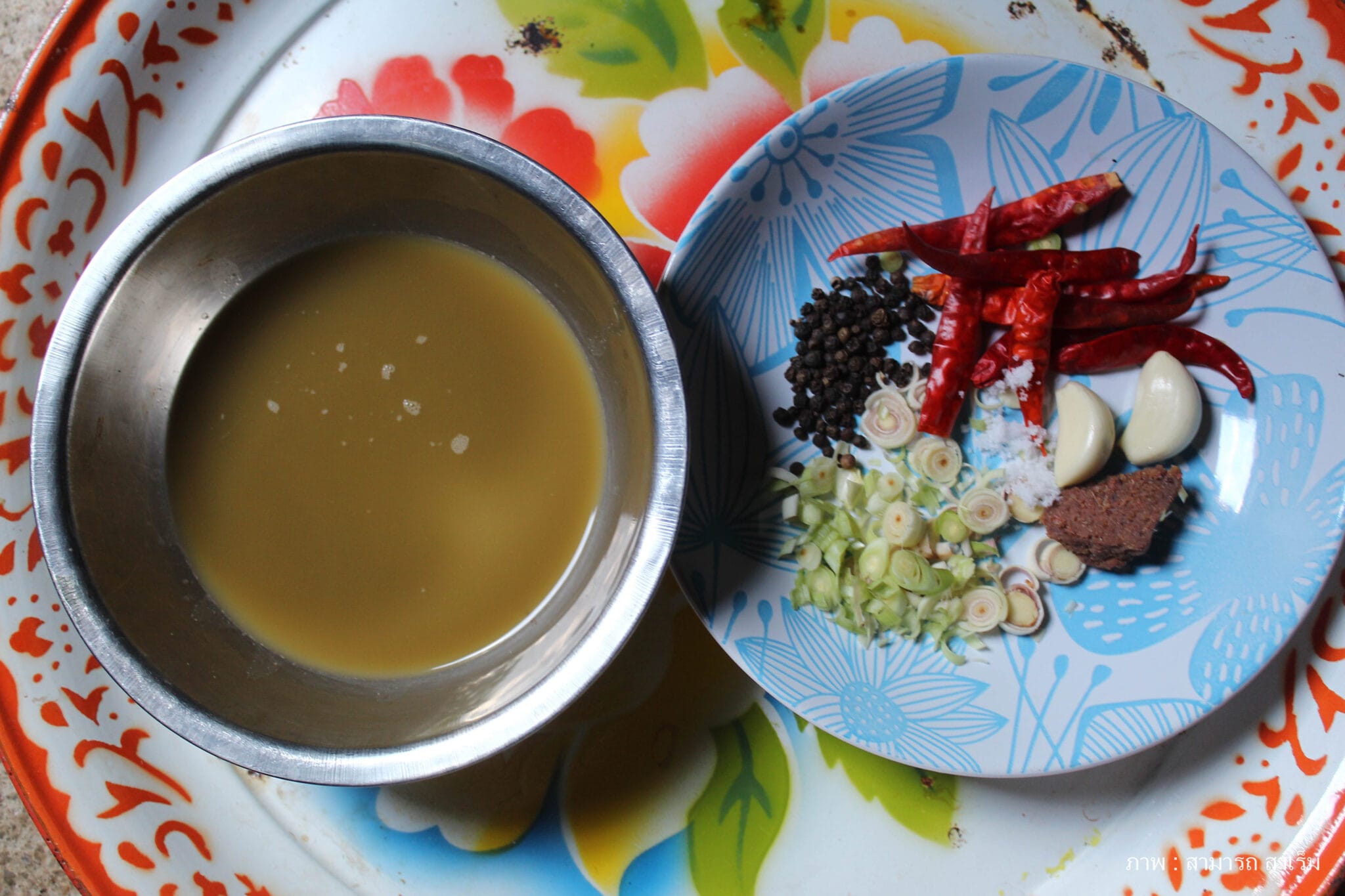 และด้วยความที่ผู้เขียนเติบโตมาในวัฒนธรรมข้าวยำน้ำเคย น้ำเคยข้าวยำที่ว่านี้ทำจากวัตถุดิบที่เรียกว่า “เคยน้ำ” นำมาปรุงกับสมุนไพร จึงได้สอบถามเพิ่มเติมว่า น้ำเคยหอยเสียบกับน้ำเคยปูหิน นั้นสามารถรับประทานกับข้าวยำได้ไหม วะฉ๊ะให้ข้อมูลว่าไม่ได้เพราะกินกับข้าวสวยเท่านั้นจากที่เติบโตมา