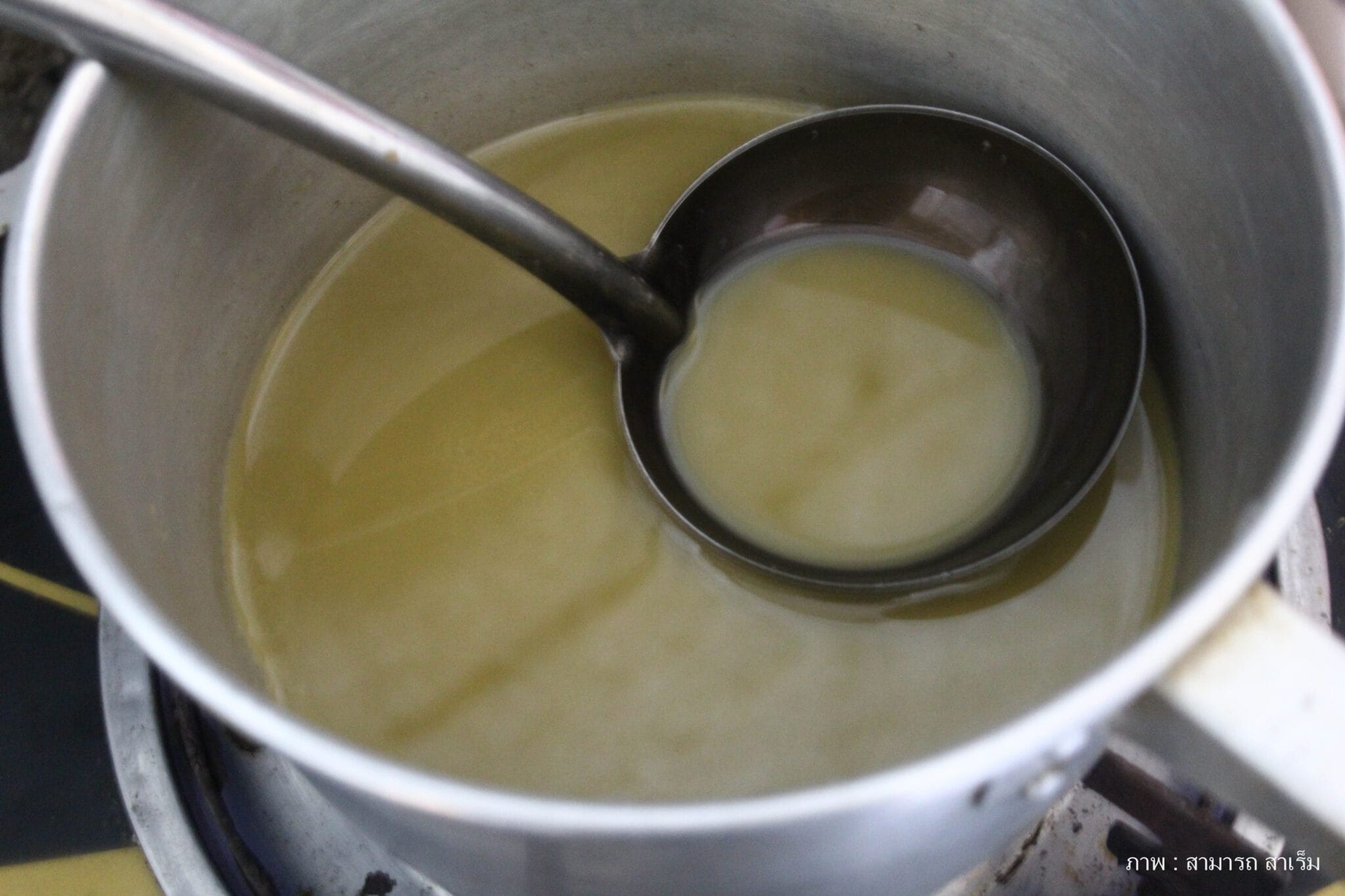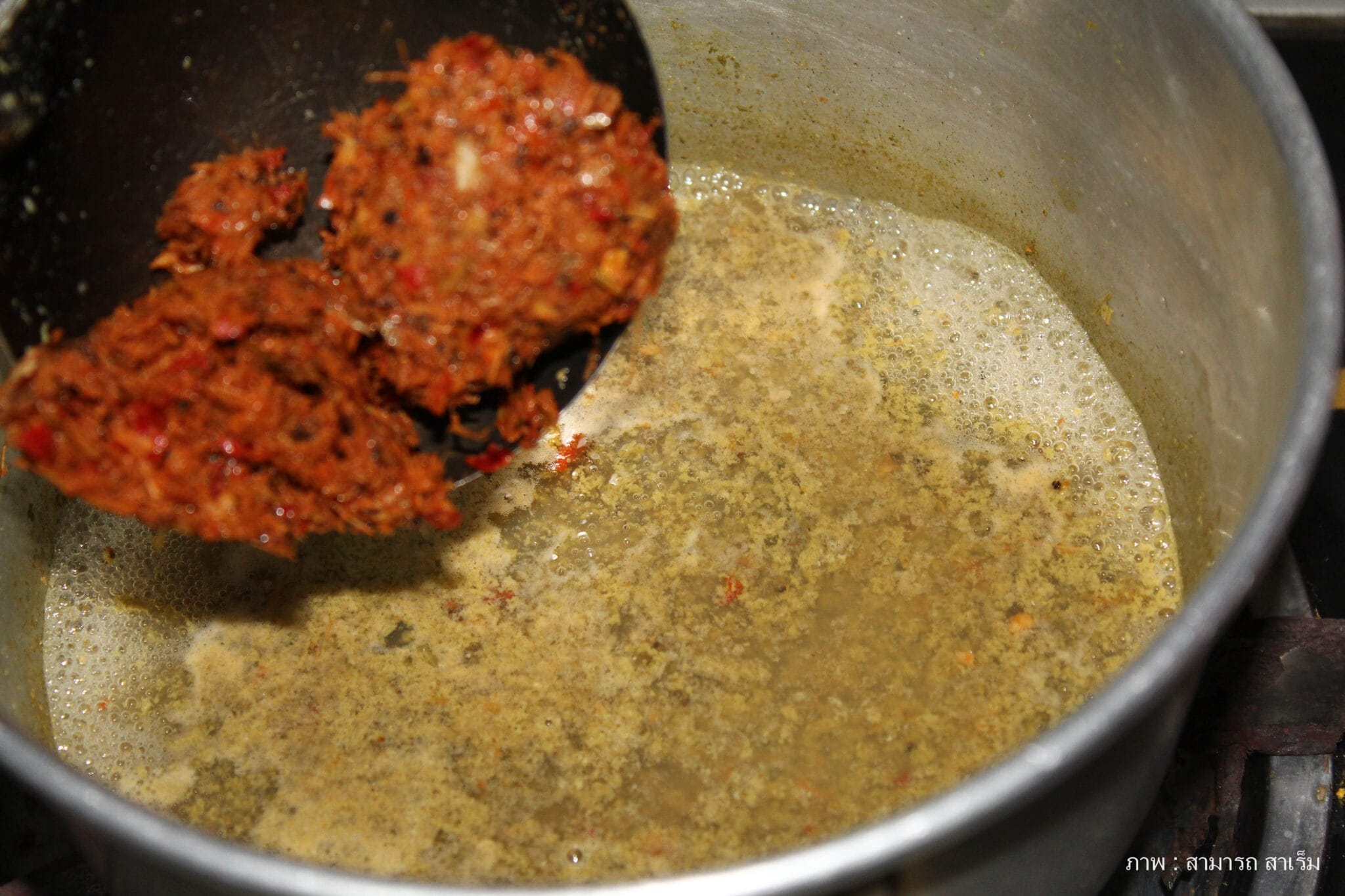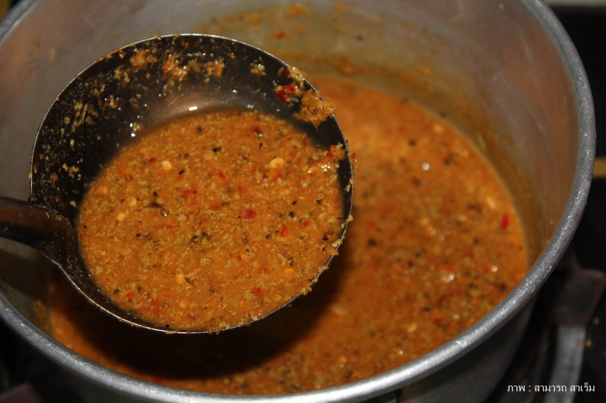 วะฉ๊ะจึงให้ข้อมูลเพิ่มเติมที่น่าสนใจว่า น้ำเคยหอยเสียบ นั้นมะ(แม่)ของแกก็ทำให้กินเหมือนกัน เป็นอาหารของคนแต่แรก(สมัยก่อน) เด็กสมัยนี้ไม่รู้จักกันแล้ว มีวิธีการทำคือ หอยเสียบที่เราหามาได้นั้นต้องนำมาใส่กะละมังแช่ไว้กับน้ำทะเลประมาณ ๑ – ๒ ชั่วโมงเพื่อให้หอยคายทรายออกมา แล้วล้างด้วยน้ำสะอาดอีกสามน้ำ ใส่ตระกร้าตั้งให้สะเด็ดน้ำ และนำมาตำในครก ตักใส่ภาชนะเติมน้ำเปล่าลงไปกวนให้เข้ากัน แล้วกรองเอาเฉพาะน้ำอย่าให้มีเปลือกหอยติดลงไปเด็ดขาด น้ำที่ได้ออกมาเรียกว่า “น้ำเคย” นำน้ำที่ได้นี้เอาไปต้มให้เดือดแล้วใส่เครื่องแกงเผ็ดที่มีส่วนผสมคือ กระเทียม ตะไคร้ พริกแห้ง พริกไทย เกลือ กะปิ โดยต้มให้น้ำกับเครื่องแกงเข้าเป็นเนื้อเดียวกัน