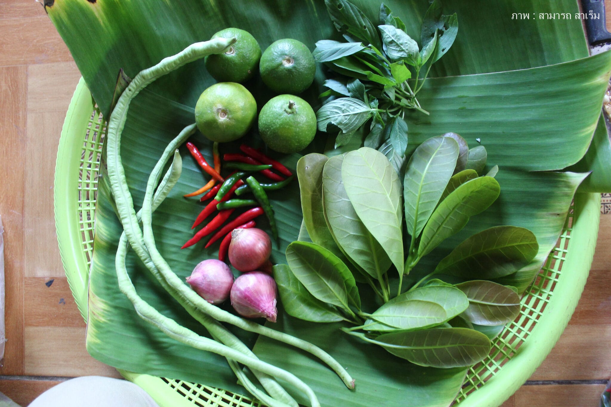 โดยมีส่วนผสมคือ น้ำส้มโหนด หรือ น้ำมะนาว โดยสูตรดั้งเดิมนั้นจะใช้น้ำส้มโหนด เกลือ และมีผักต่าง ๆ คือ หอมแดง พริกสด ใบโหระพา ถั่วฝักยาว ยอดหัวครก (ยอดมะม่วงหิมพานต์) หอมแดงเป็นวัตถุดิบที่หาซื้อติดไว้คู่ครัว ส่วนพริกสด ใบโหระพา เราเก็บได้จากรอบ ๆ บ้าน ส่วนยอดหัวครกนั้น วะฉ๊ะพาไปเก็บที่หมู่บ้านข้าง ๆ ซึ่งคนในหมู่บ้านช่วยกันปลูกไว้ ตลอดแนวสองฝั่งถนนมีความยาวหลายกิโลเมตร ชาวบ้านในพื้นที่แถบนี้สามารถนำผลผลิตจากต้นหัวครก ทั้งลูก ใบ มากินหรือขายก็ได้ และถั่วฝักยาวอุดหนุนจากคนในหมู่บ้านที่ปลูกกินปลูกขายกันเอง