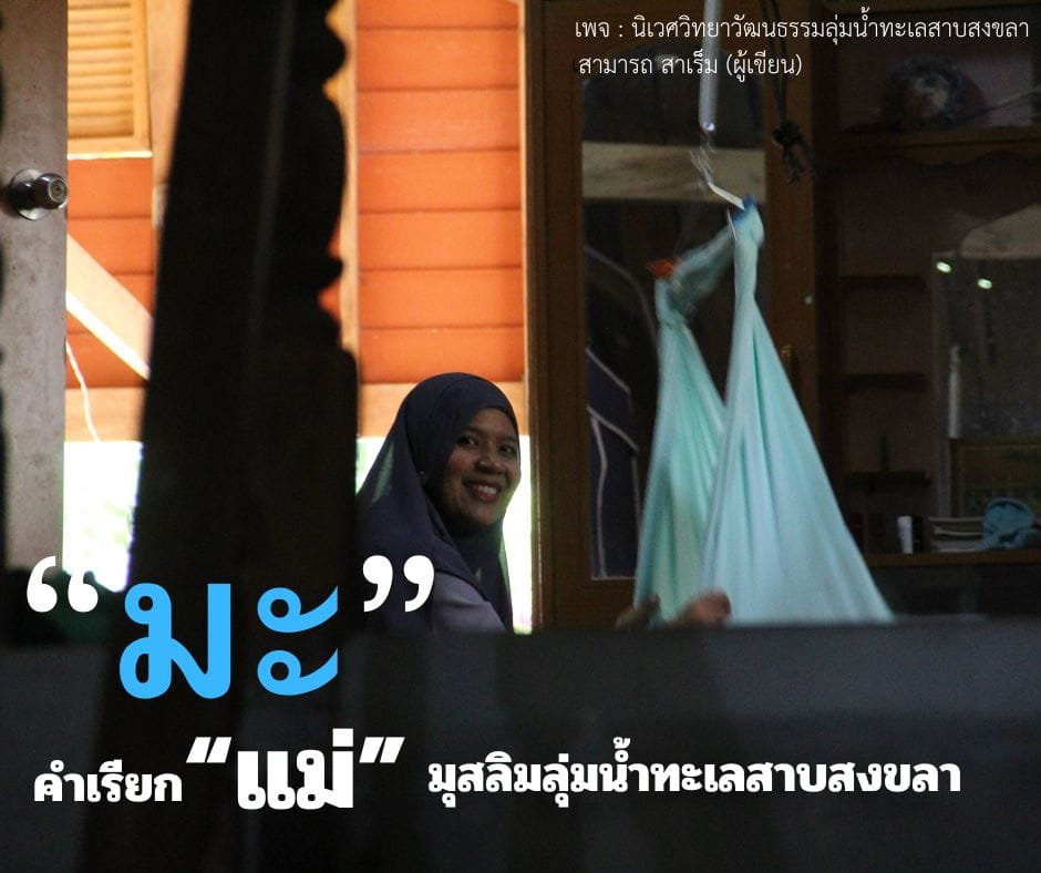 จากข้อมูลในงานศึกษาดังกล่าวและเก็บข้อมูลภาคสนามเพิ่มเติมในภายหลังผู้เขียนพบว่าคนมุสลิมลุ่มน้ำทะเลสาบสงขลา ใช้คำเรียกแม่ว่า “#มะ” กันโดยทั่วไป ซึ่งเป็นคำมลายู ในภาษามลายูกลางใช้ว่า “#Mak” หรือ “#Emak” อย่างไรก็ดีเป็นที่น่าสังเกตว่ามุสลิมที่ใช้ภาษาไทยถิ่นใต้ รวมถึงมุสลิมในภาคกลางบางหมู่บ้านต่างก็ใช้คำว่า “#มะ” หมายถึง “#แม่” เช่นกัน