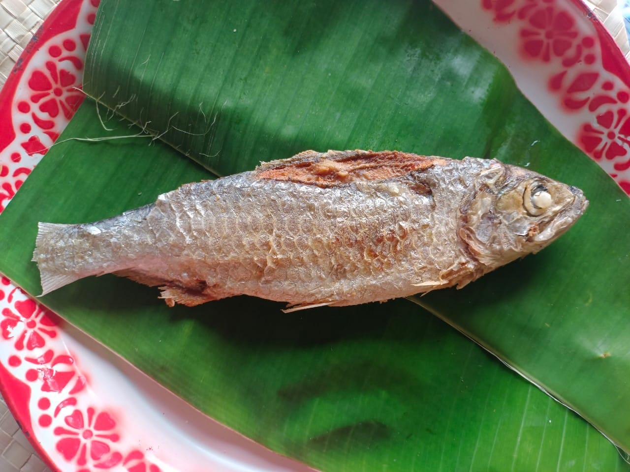 สับครีบกับหางปลาออก ไม่ต้องขูดเกล็ดปลา แล้วเจาะที่หลังของตัวปลาเพื่อเอาขี้ปลาออก ล้างท้องและตัวปลาให้สะอาด ขณะผู้เขียนใช้นิ้วล้วงลงไปในตัวปลาพบว่าเนื้อของปลามีความนิ่มเป็นอย่างมากจนแอบคิดว่าปลาไม่สดหรือเปล่า แต่มะบอกว่าปลายังสด เนื้อนิ่มแบบนี้ถือว่าปกติ แล้วนำมาวางไว้ให้สะเด็ดน้ำ