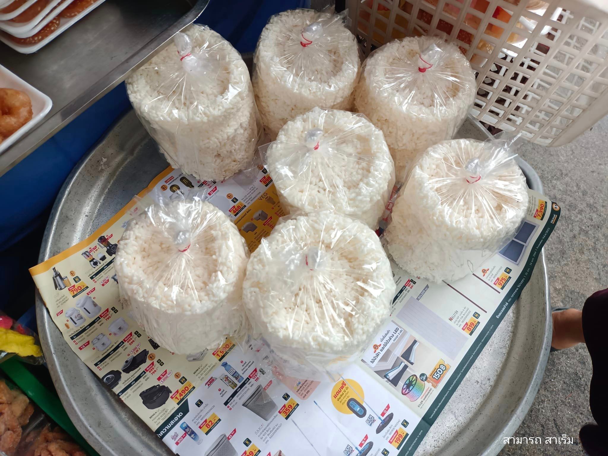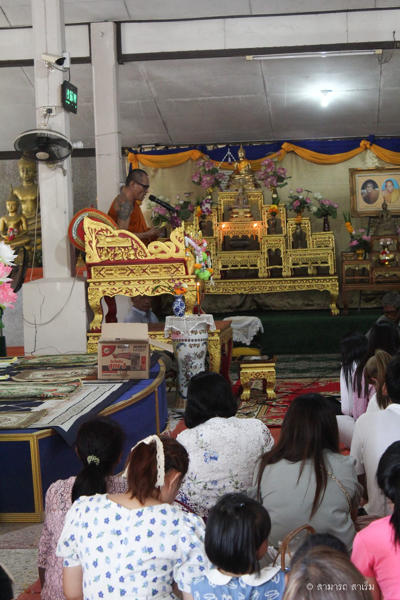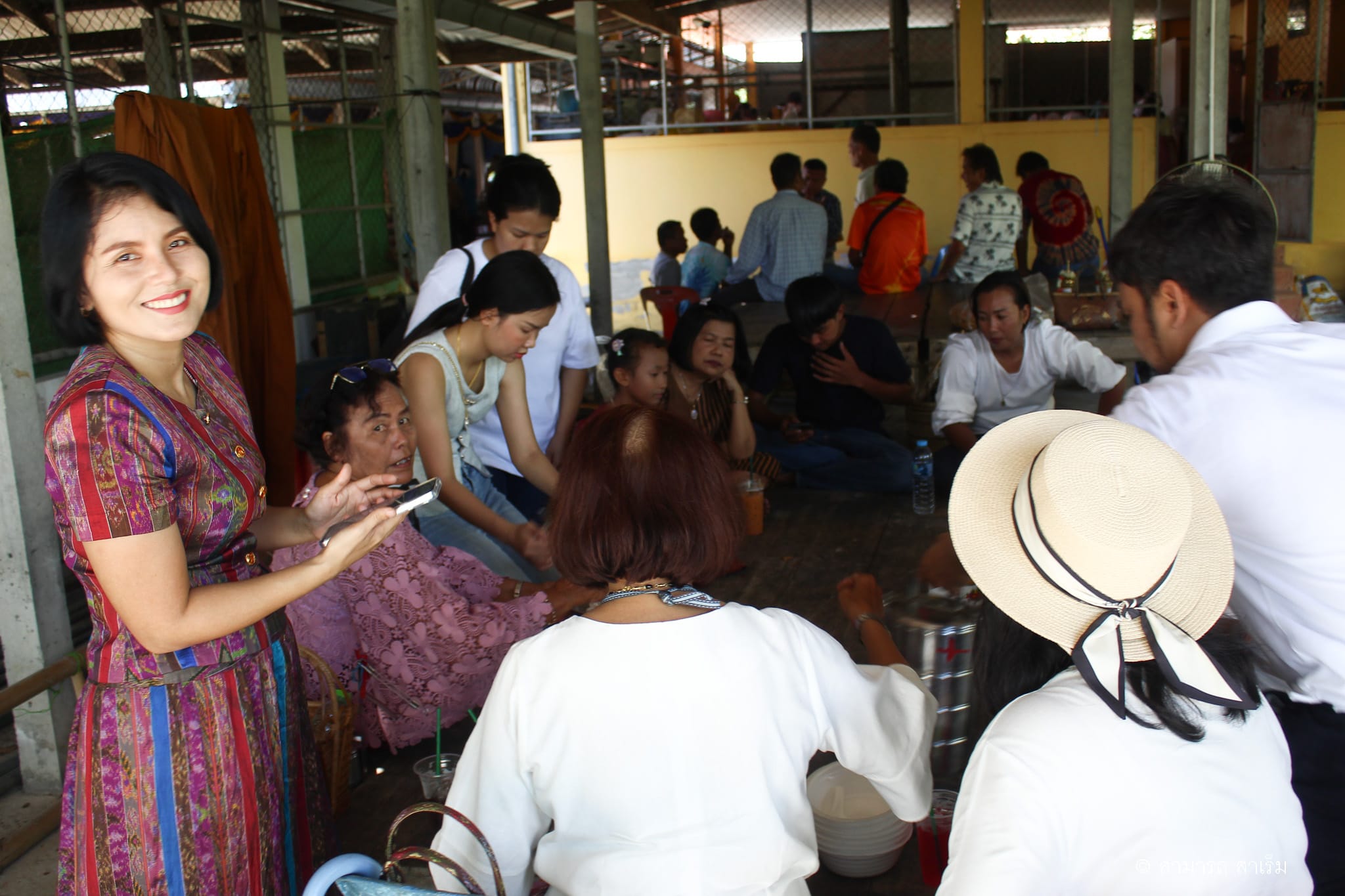 ชาวบ้านกำลังกำลังทอนขนมต่าง ๆ จากเจ้าหน้าที่วัด ผู้เขียนสังเกตว่าขนมลาเป็นที่ต้องการทอนกัน กิโลกรัมละ ๖๐ บาท ราคาถูกกว่าที่ซื้อในท้องตลาด