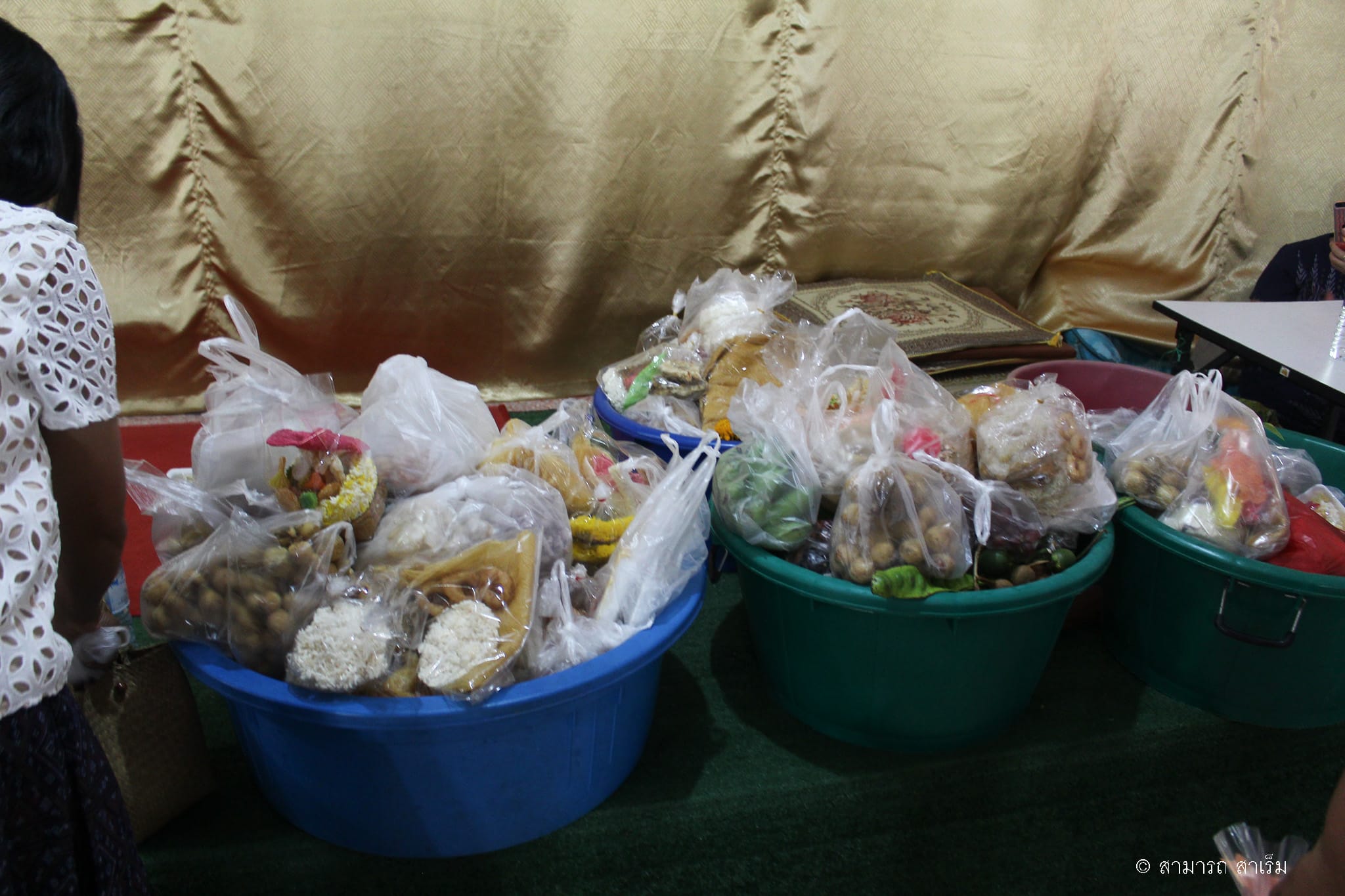 อาหารบางส่วนที่ลูกหลานคุณยายบุญเทิ่ม จุลมาศ นำมาทำบุญวันนี้