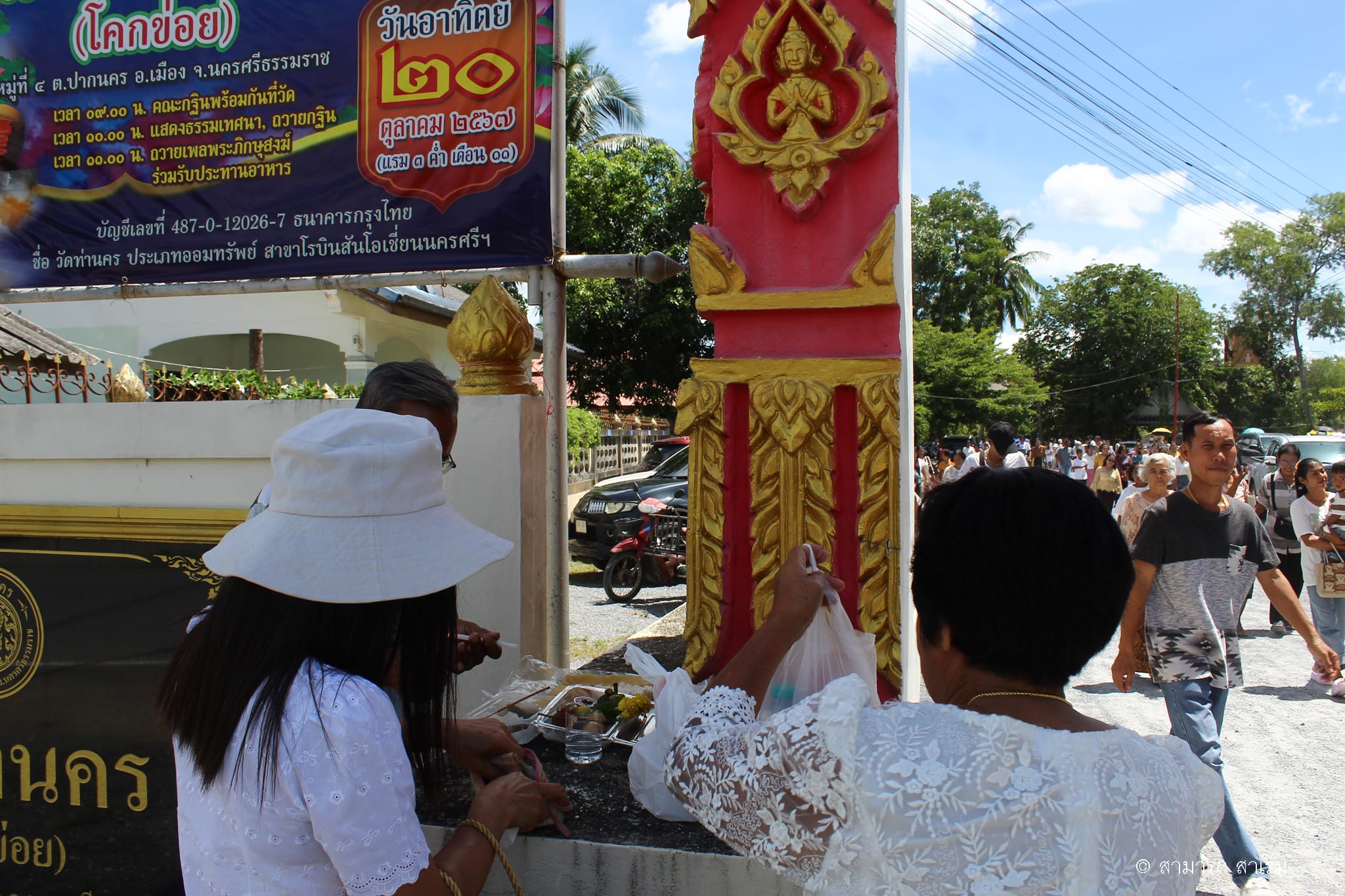 บทความชิ้นนี้ผู้เขียนได้สำรวจข้อมูลภาคสนามที่ บ้านโคกข่อย ตำบลปากนคร อำเภอเมือง จังหวัดนครศรีธรรมราช เมื่อวันที่ ๒ เมษายน พ.ศ. ๒๕๖๗ เป็นวันทำบุญส่งตายาย(วันแรม ๑๕ ค่ำเดือน ๑๐) ได้สัมภาษณ์ข้อมูลจาก “คุณยายบุญเทิ่ม จุลมาศ” (หนูวารี นามสกุลเดิม) อายุ ๖๖ ปี และได้ติดตามคุณยายไปเก็บข้อมูลการทำบุญเดือนสิบที่ “วัดท่านคร” เป็นจุดนัดหมายที่คนในหมู่บ้านมาทำบุญร่วมกัน