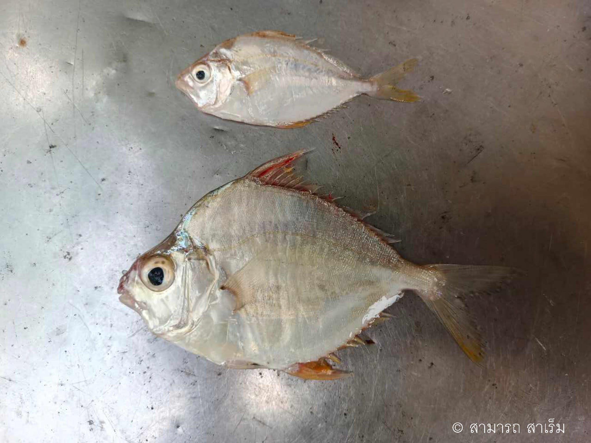 [1] ปลาขี้เกะ อ่านข้อมูลเพิ่มเติมเรื่องชื่อเรียกในภาษามลายูของปลาชนิดนี้ได้ใน : https://www.talkaboutfish.com/red-fishes-basses-congers-etc/ponyfish/