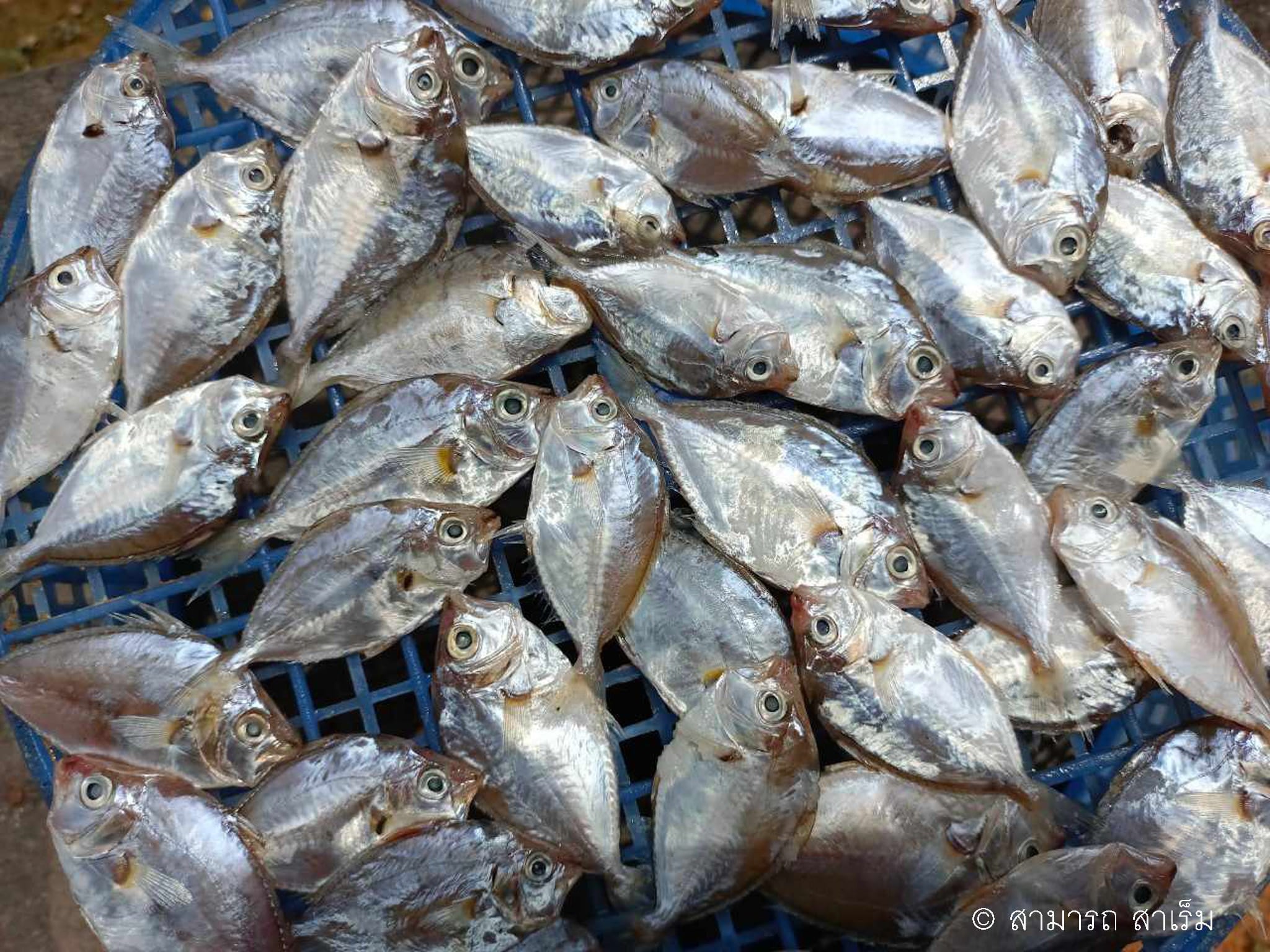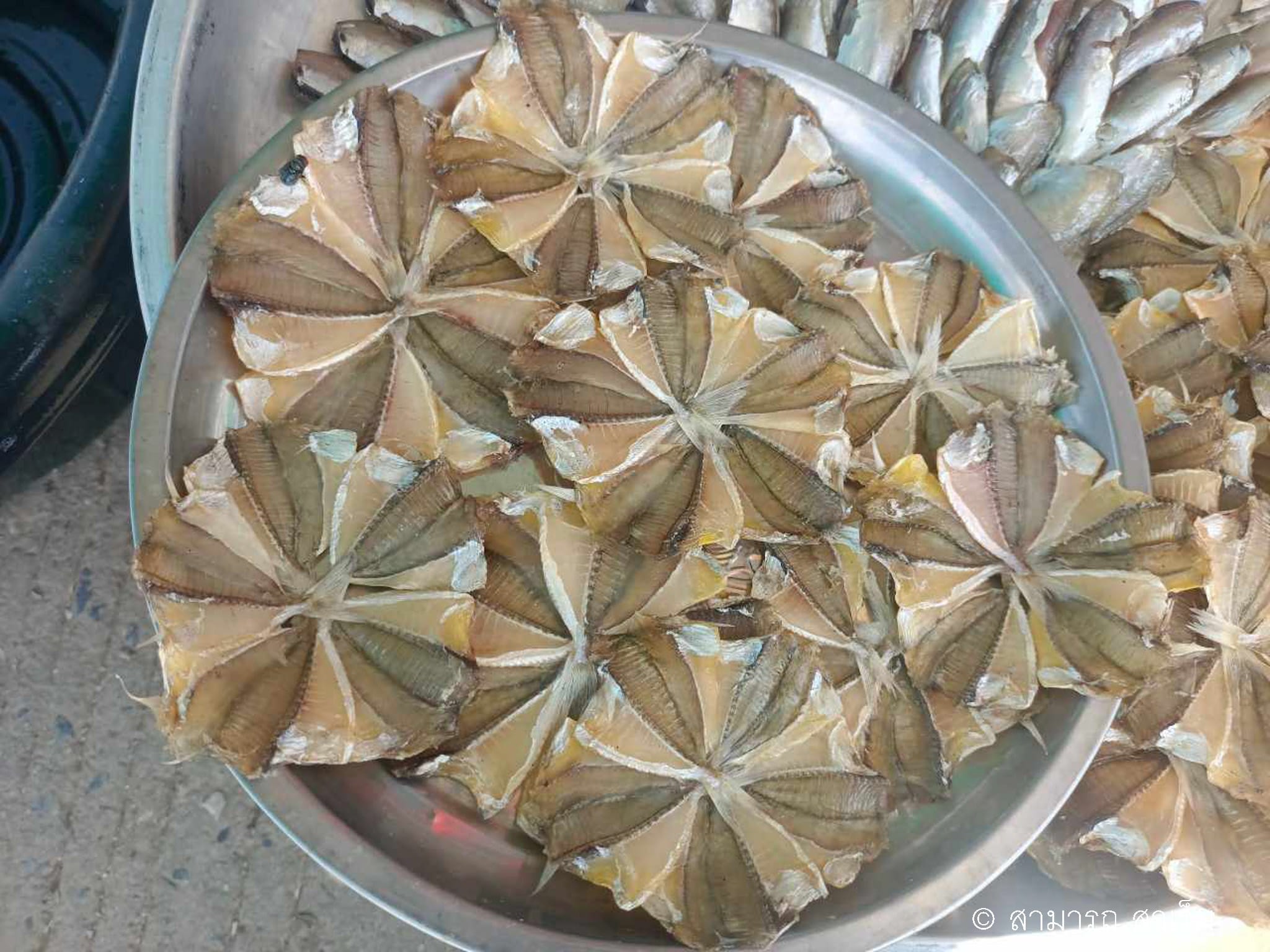 ปลาขี้เกะ ตากแห้งเป็นให้ติดกันสี่ตัว มีลักษณะที่สวยงามเหมือนดอกไม้
