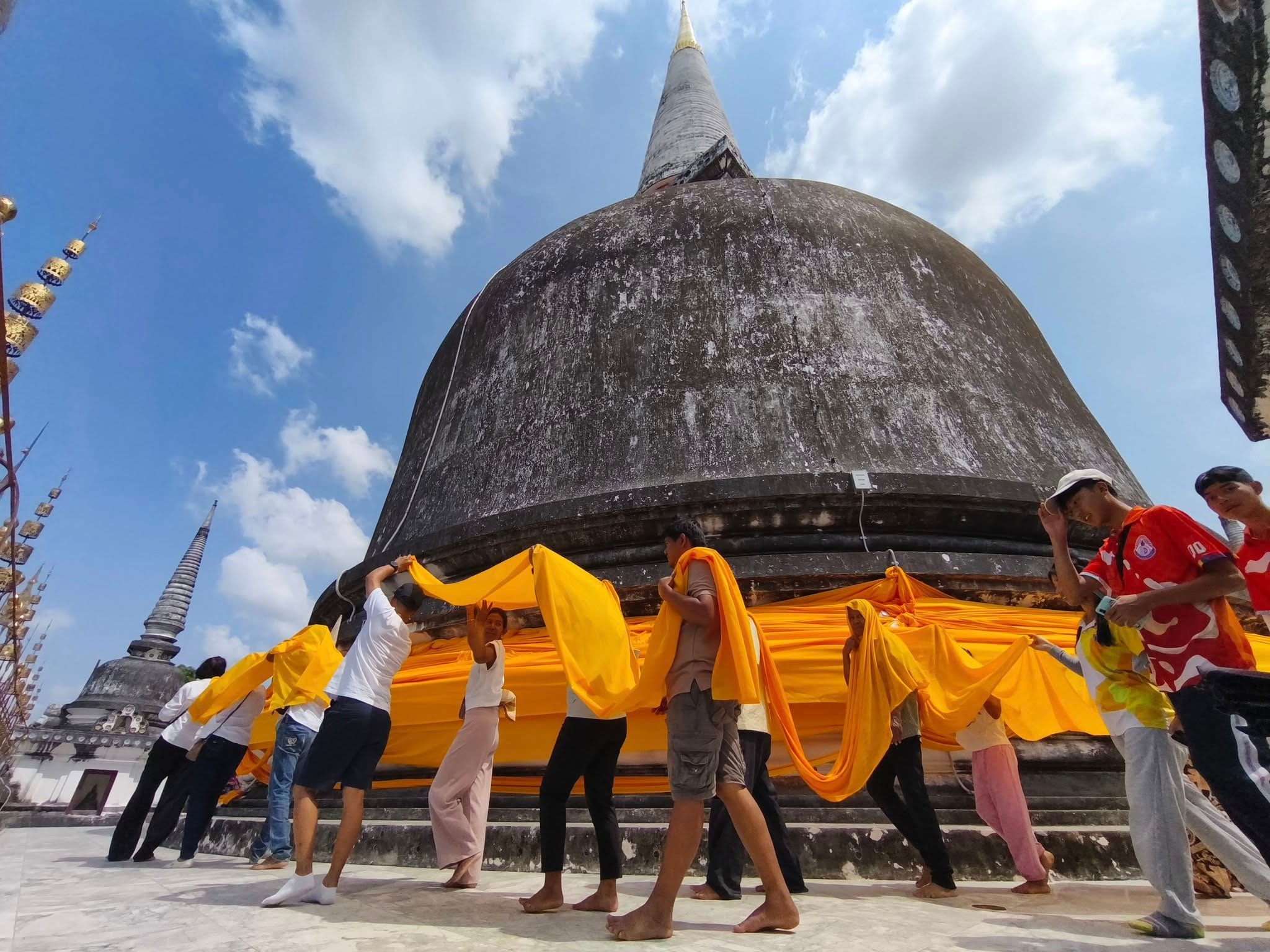 คัดจากบุดเรื่องท่านปานซ่อมพระธาตุ สำนวนนี้แต่งโดยกวีนิรนามคนหนึ่ง ให้รายละเอียดการซ่อมครั้งนั้นในบางแง่มุมซึ่งช่วยเสริมกันกับสำนวนของท่านปลัดเลี่ยมได้ แต่สภาพไม่ค่อยสมบูรณ์ต้นฉบับขาดหายไปกว่าครึ่ง สันนิษฐานว่าเรื่องนี้ยังไม่เคยมีการปริวรรตเผยแพร่มาก่อนในที่ใดเลย และอาจมีเหลืออยู่เพียงฉบับเดียวนี้ วรรณกรรมเรื่องนี้แต่งด้วยฉันทลักษณ์แบบราบนคร ไม่ค่อยเคร่งครัดบท เคร่งครัดบาทเท่าไหร่ ผมจัดใหม่มาแบบงง ๆ ก็มีผิดอยู่บ้าง ส่วนที่ยกมานี้กล่าวถึงนายช่างสองคน ชื่ออะไรบอกเลือน ๆ คนหนึ่ง กับชื่อเทพนรินทร์ ซึ่งคงเป็นข้าราชการเมืองนครที่ขุนเทพนรินทร์ เป็นเจ้าพนักงานสังกัดกรมมหาดไทยซ้าย นั่งทำราชการ ณ ศาลาหลวงที่หน้าวังเจ้าเมืองนคร