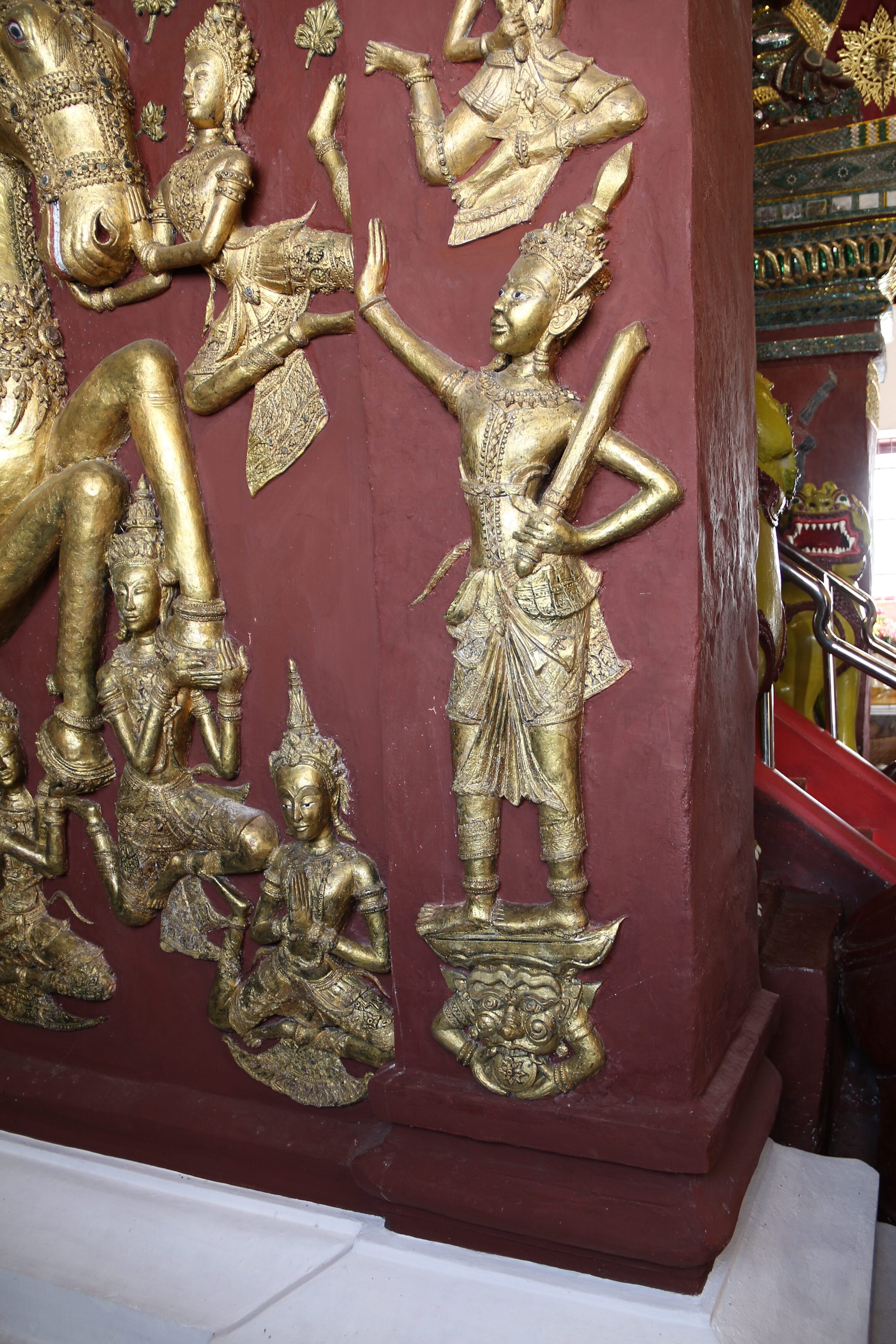 ประติมากรรมพญามารในวิหารพระทรงม้าแม้จะแสดงใบหน้าพญามารอย่างเทพบุตร แต่ก็ยังแสดงคุณลักษณะแบบอสูรหลายประการ