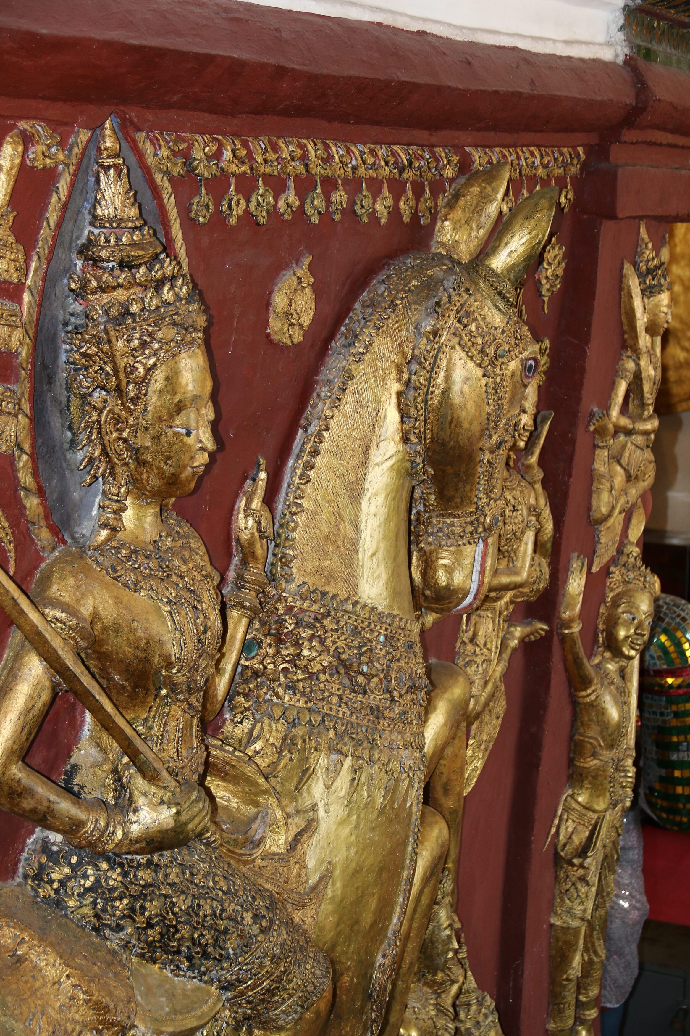 ประติมากรรมฉากมหาภิเนษกรมณ์ภายในวิหารพระทรงม้านี้มีรูปแบบที่แสดงถึงอิทธิพลของศิลปะลุ่มแม่น้ำเจ้าพระยาในราวพุทธศวรรษที่ 23 อย่างชัดเจน แต่การแสดงพญามารที่มีใบหน้าแบบเทพบุตรซึ่งไม่ใช่มาตรฐานของลุ่มน้ำเจ้าพระยานี้ หากไม่ได้เกิดจากการซ่อมแซมในสมัยหลัง ก็อาจแสดงถึงความคิดหรือรูปแบบมาตรฐานอื่นที่มีอยู่ในพื้นที่ภาคใต้อันเคยใกล้ชิดกับมอญ และลังกาอย่างแนบแน่นในอดีต