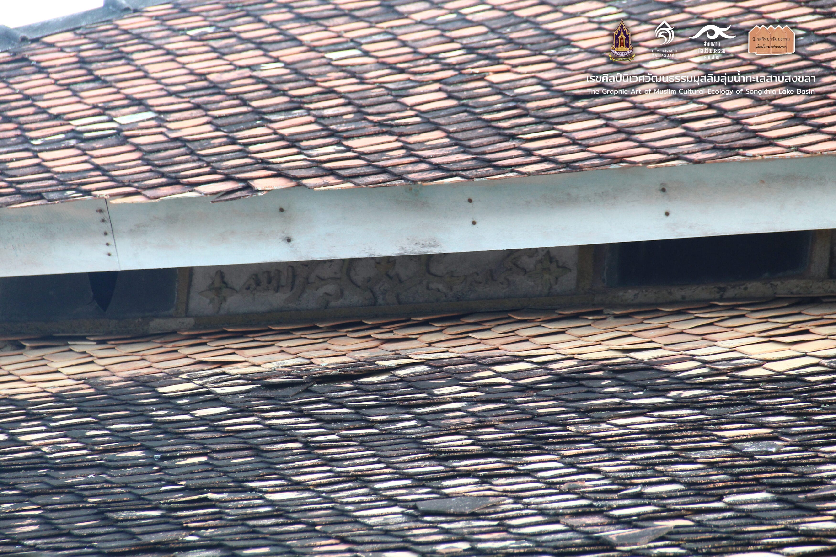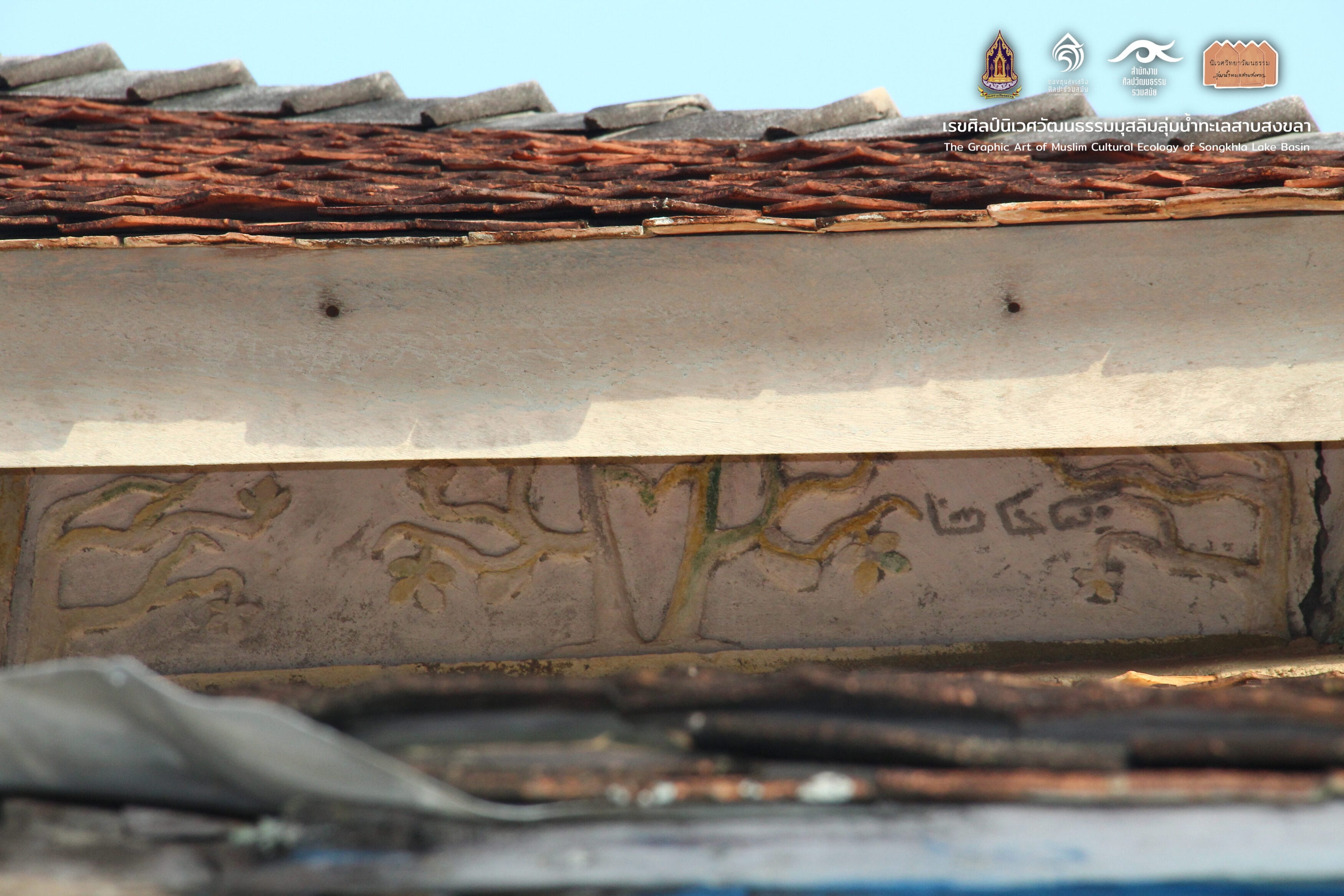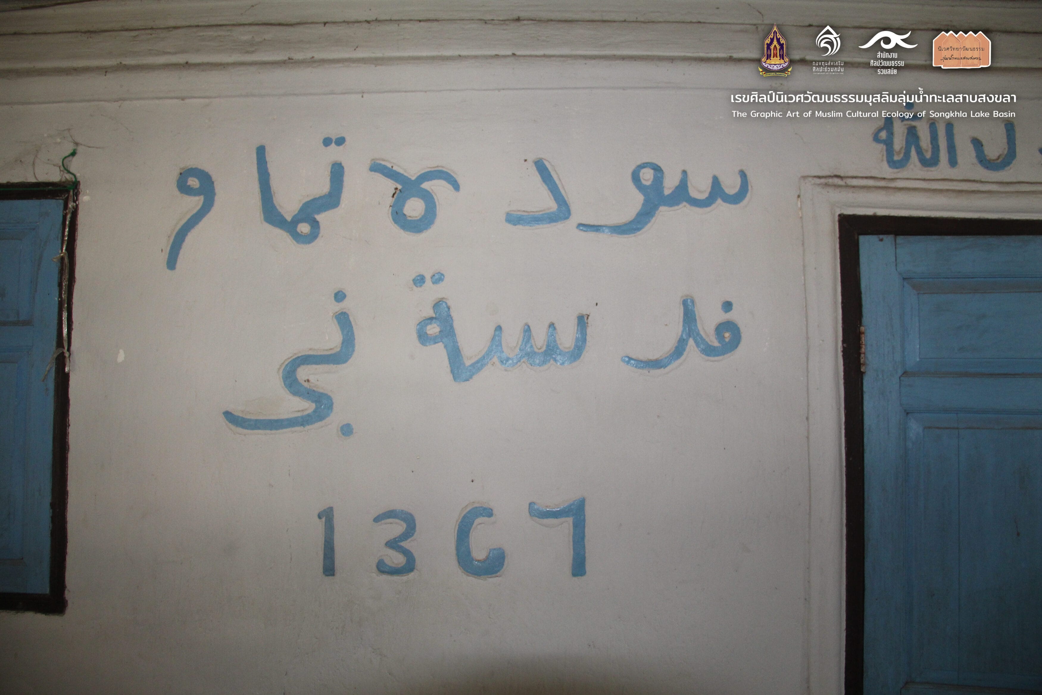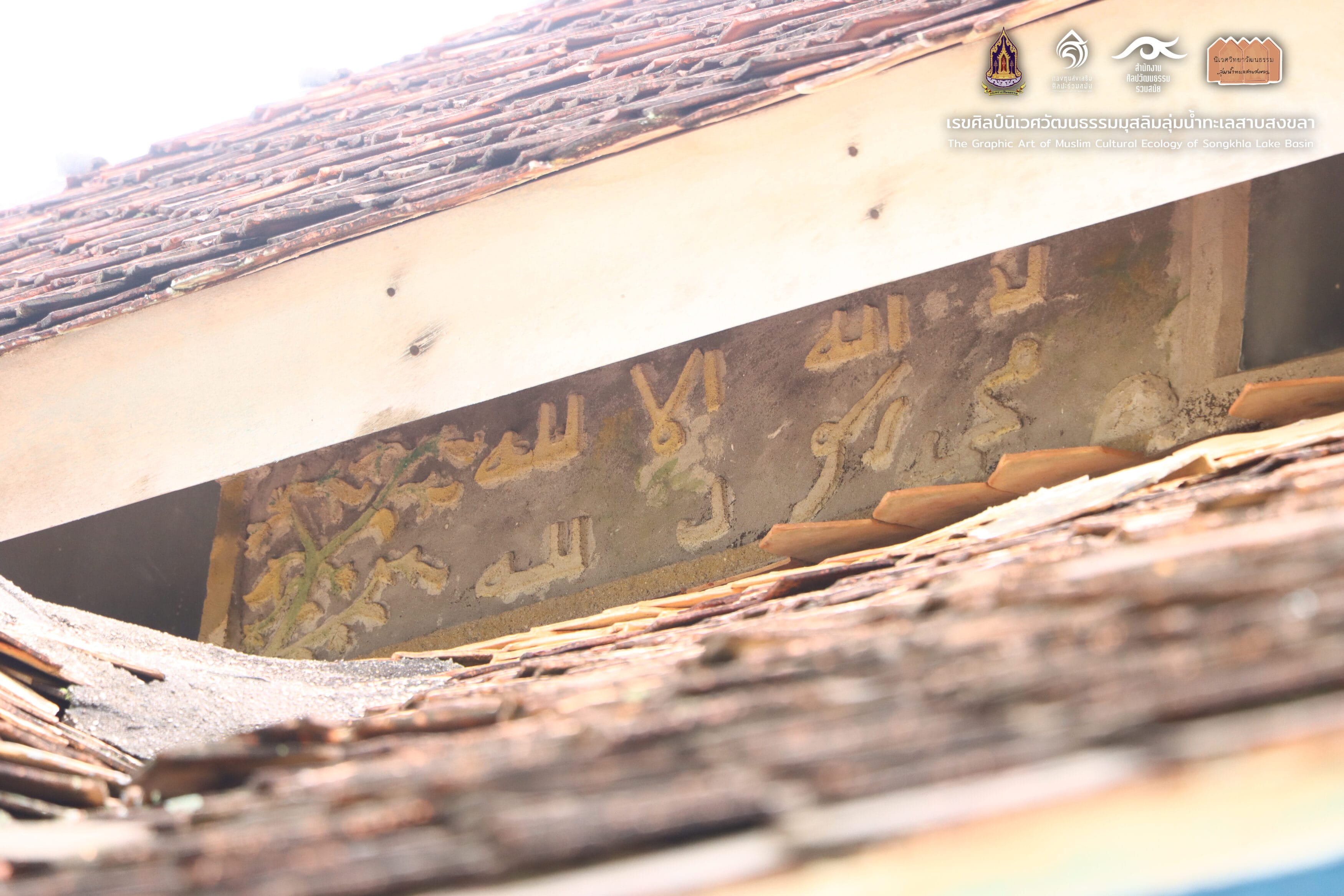 ๑.อักษรประดิษฐ์ที่เกี่ยวข้องกับการสร้างสุเหร่ามีสองตำแหน่งโดยปั้นปูนเป็นภาษาไทยถิ่นใต้ กับภาษามลายูอักษรยาวี