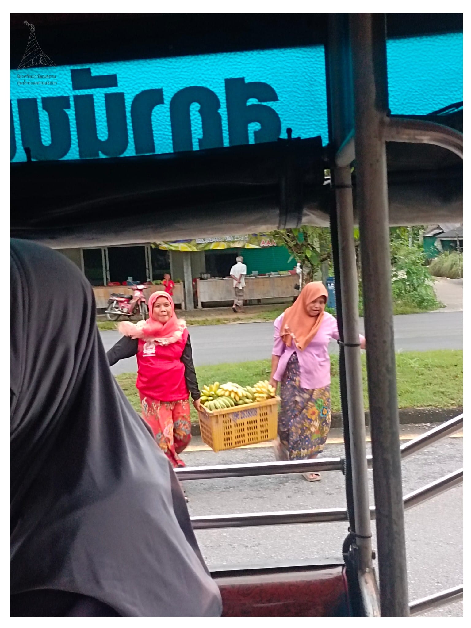 ผมมาหยุดรอรถสองแถวประจำทาง ซึ่งชาวบ้านเรียกว่า “รถหลังคา” ลักษณะเป็นรถกระบะที่มีหลังคาสูง ญาติบอกว่าเพิ่งมีการจัดตั้งคิวขึ้นมาใหม่ในชื่อสาย “ด่านดง – หาดใหญ่” ไม่นานรถก็มาถึง ผมรีบขึ้นรถพร้อมกับการกล่าว สลาม(ทักทาย) กับญาติสนิทที่ผมเรียกว่า สูหรือจู น้องสาวของปะ หรือ ลูกสาวคนสุดท้องของคุณปู่(โต๊ะบันหรือปะแก่) ที่เดินตามมาส่งขึ้นรถ