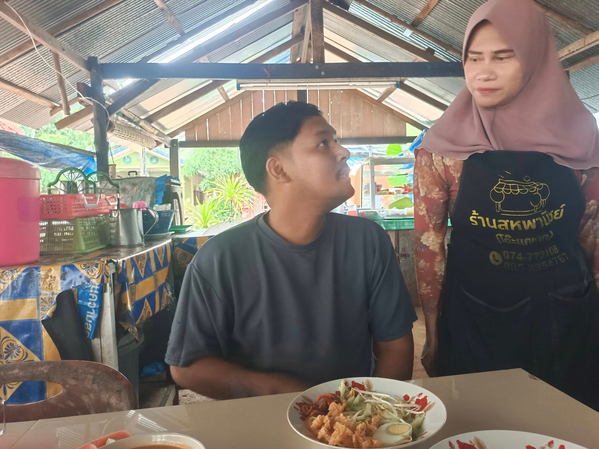 น้องบ่าวธีรเทพ จิตต์หลัง พามาตามรอยปัสมอสที่ร้านโซเฟียสาขา 3 ซึ่งมีคุณคอดีย๊ะ หาบยูโซะ วัย 43ปี ผมขอเรียกท่านว่า #เมาะห์คอดีย๊ะ(เมาะห์หมายถึงแม่) เป็นเจ้าของรสมือ