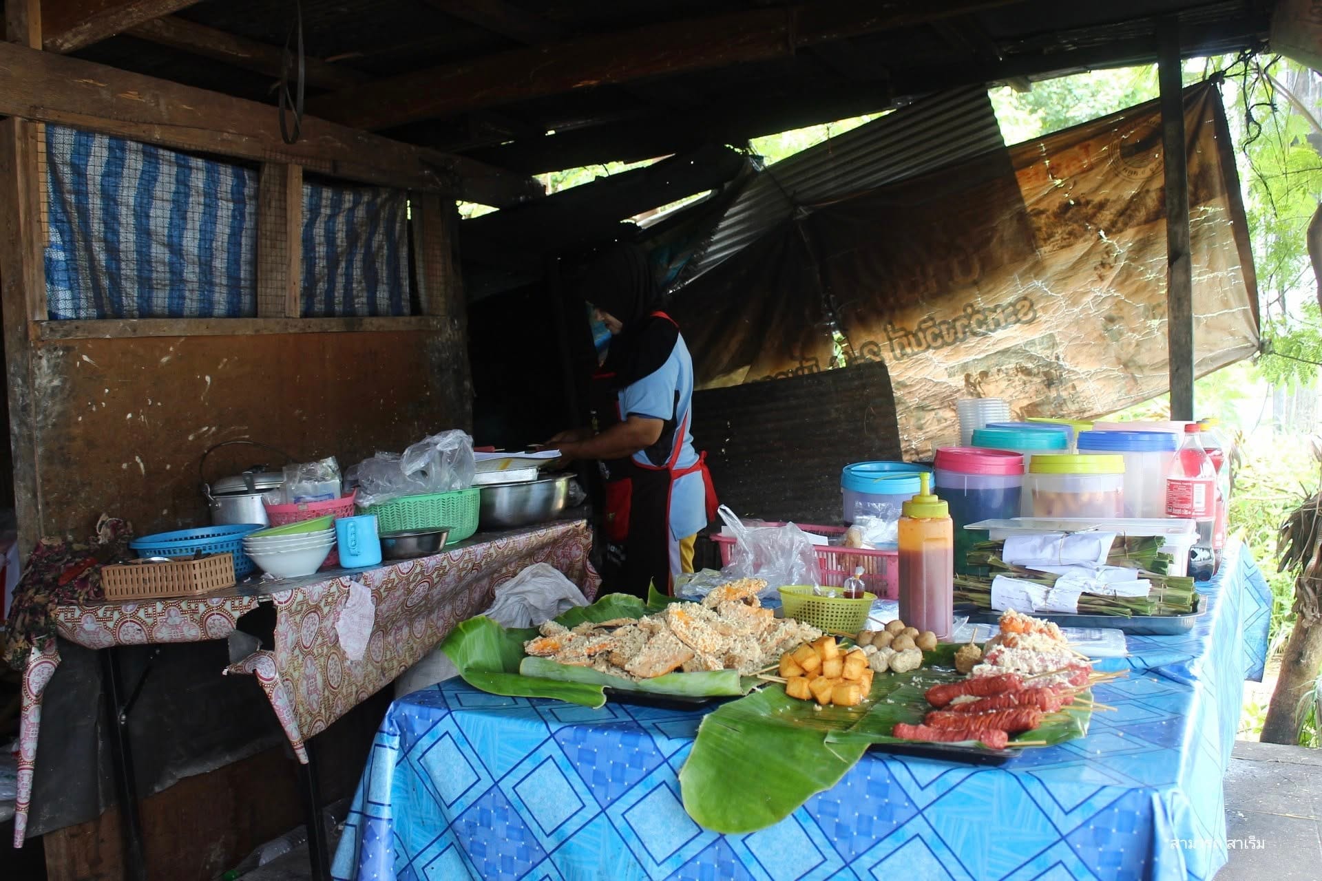 เครื่องดื่มและขนม : มีทั้ง น้ำชาเย็น, น้ำกูปี (กาแฟ), น้ำแฟนต้า (แก้วละ 15 บาท), ขนมจาก (มัดละ 20 บาท), ขนมกะหรีปั๊บ (ลูกละ 5 บาท) และลูกชิ้นหลากหลายแบบ แต่สิ่งที่พิเศษและเป็นพระเอกของมื้อนี้คือ “ขนมจีนแกงส้ม” ซึ่งเป็นเมนูแรกที่ “ก๊ะย๊ะ” เจ้าของร้านเริ่มทำขายตั้งแต่เช้า