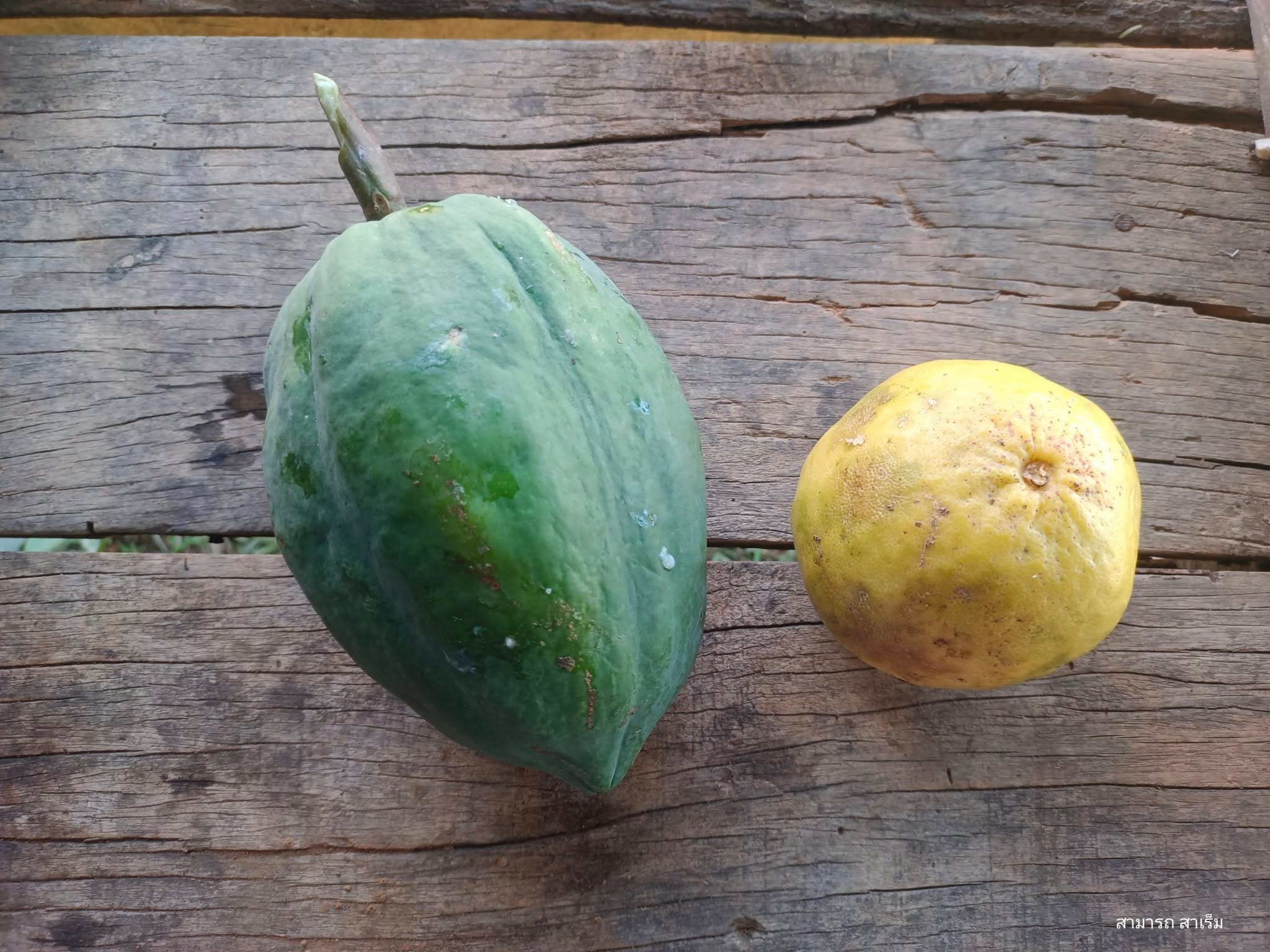 ผู้เขียนบังเอิญได้ “ส้มนาวควาย” ปลูกที่บ้านพังลา อำเภอสะเดา จังหวัดสงขลา จากตลาดนัดธรรมโฆษณ์ ตำบลสทิงหม้อ อำเภอสิงหนคร จังหวัดสงขลา จึงได้นำมาลองทำ “ยำแตหลา” ตามสูตรของ “มะแก่” กินดู