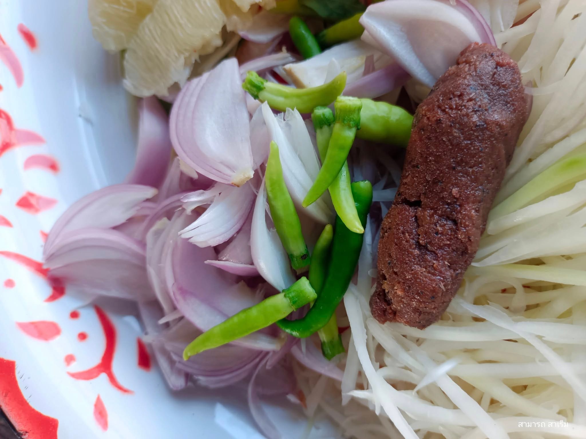 1. แตหลา (มะละกอ) ขูดเป็นเส้น หรือสับก็ได้