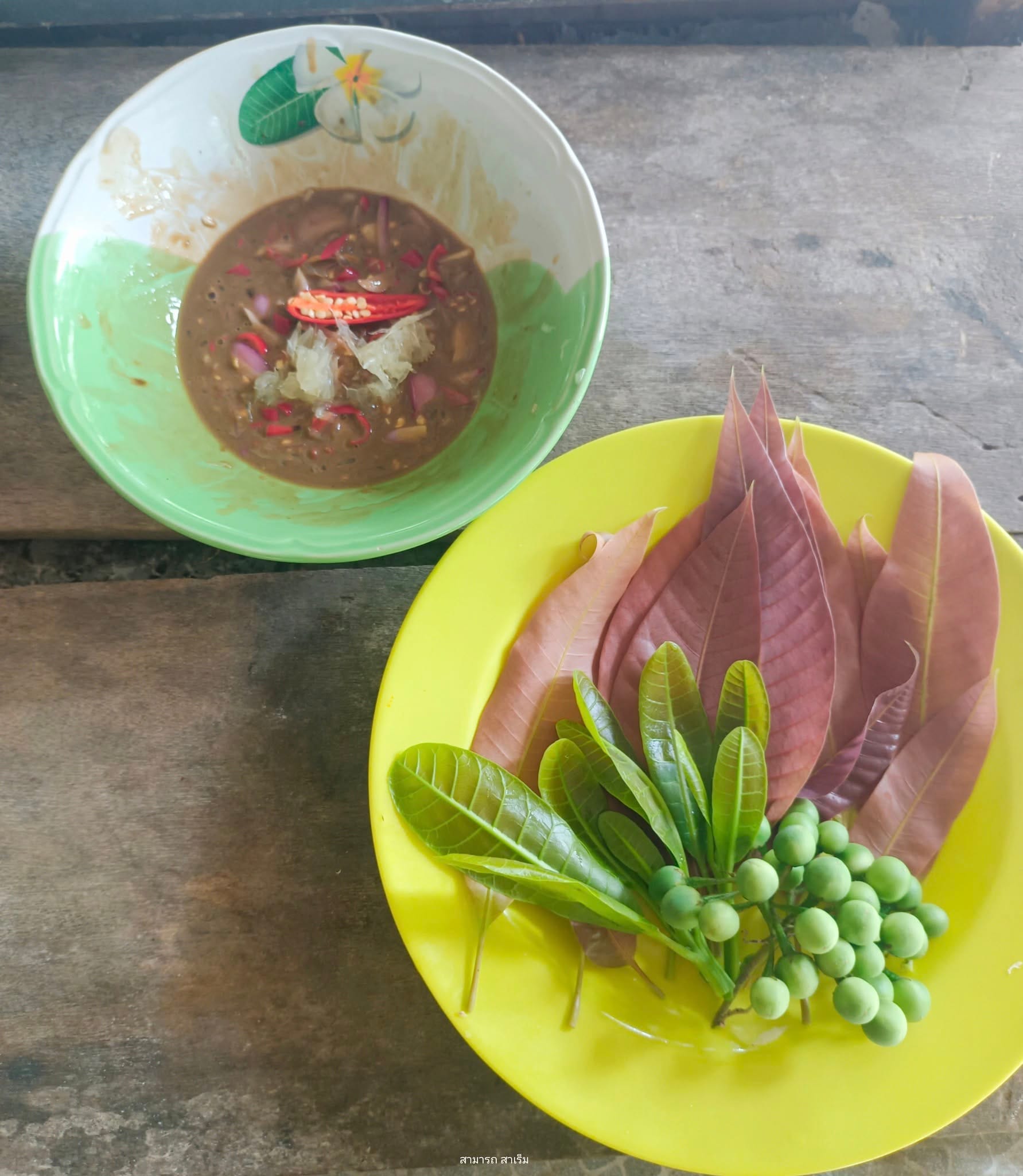 มื้อเที่ยงวันนี้จึงอิ่มเอมไปด้วยรสชาติอาหารจากวัตถุดิบพื้นถิ่นคือ #แกงส้มปลาคางโค๊ะกับปลาหัวอ่อนใส่ส้มนาวควาย รสชาติเปรี้ยวจัดจ้านเป็นเอกลักษณ์ #ปลาสองซี่อับเกลือทอด เนื้อหวานและนิ่มเค็มกำลังดี #น้ำชุบหยำ