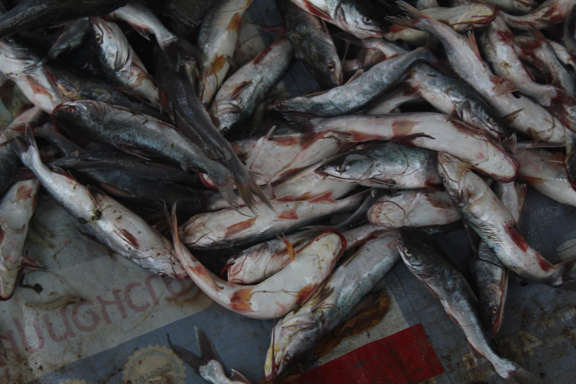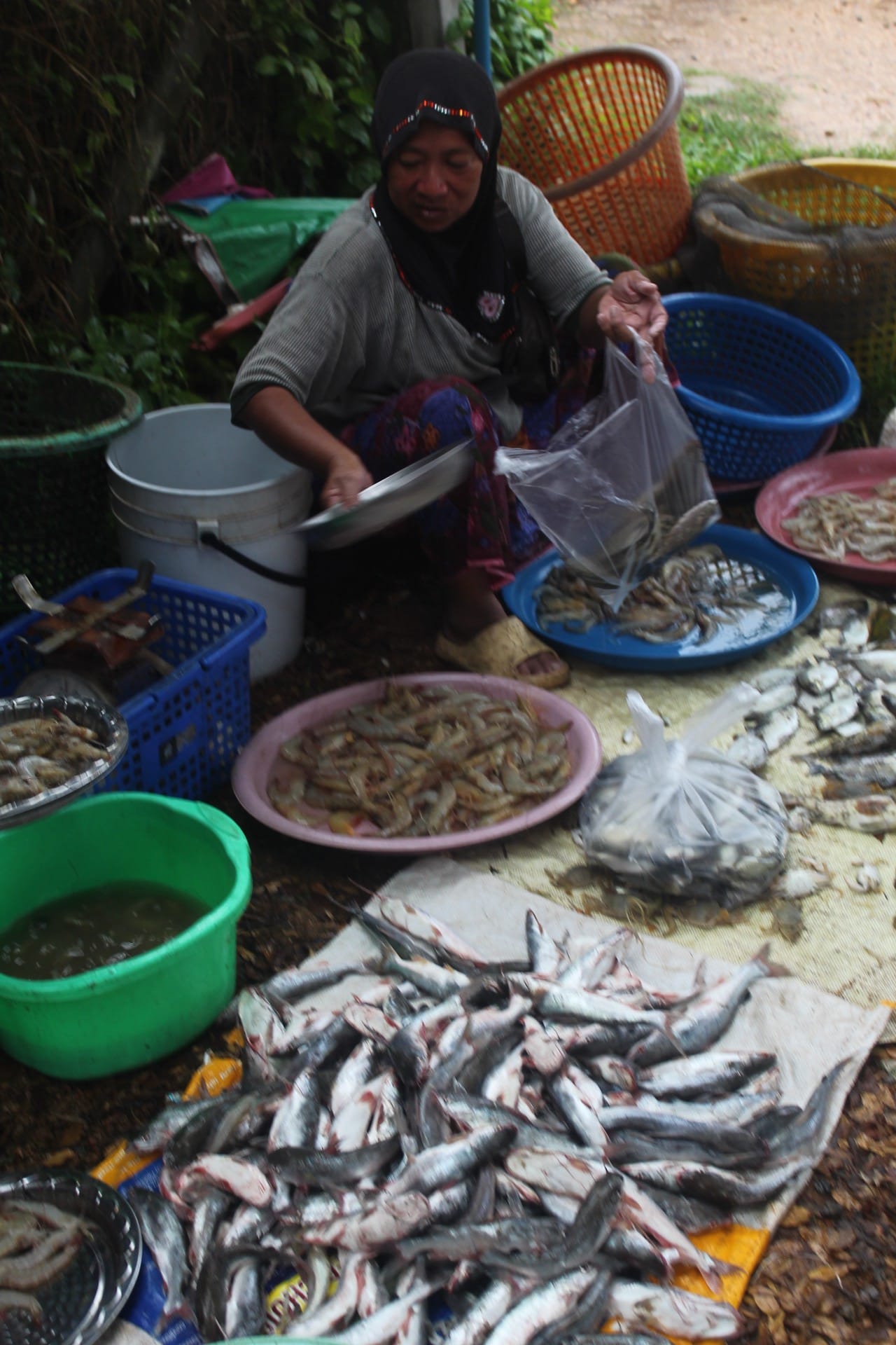 ร้านนี้เป็นแม่ค้าคนแขกจากบ้านท่าเสา สามีหากินในทะเลสาบสงขลาตอนล่างหน้าบ้าน ผมตั้งใจซื้อ ปลาคางโค๊ะ (หรือปลาหัวโม่ง) ผสมกับ ปลาหัวอ่อน ซึ่งเป็นปลาในกลุ่มปลากดทะเลที่มีหน้าตาคล้ายกัน กิโลกรัมละ 60 บาท ซื้อมา 1 กิโลกรัม และให้ทางร้านทำปลาให้เรียบร้อยเพื่อเตรียมนำไปแกงรวมกัน