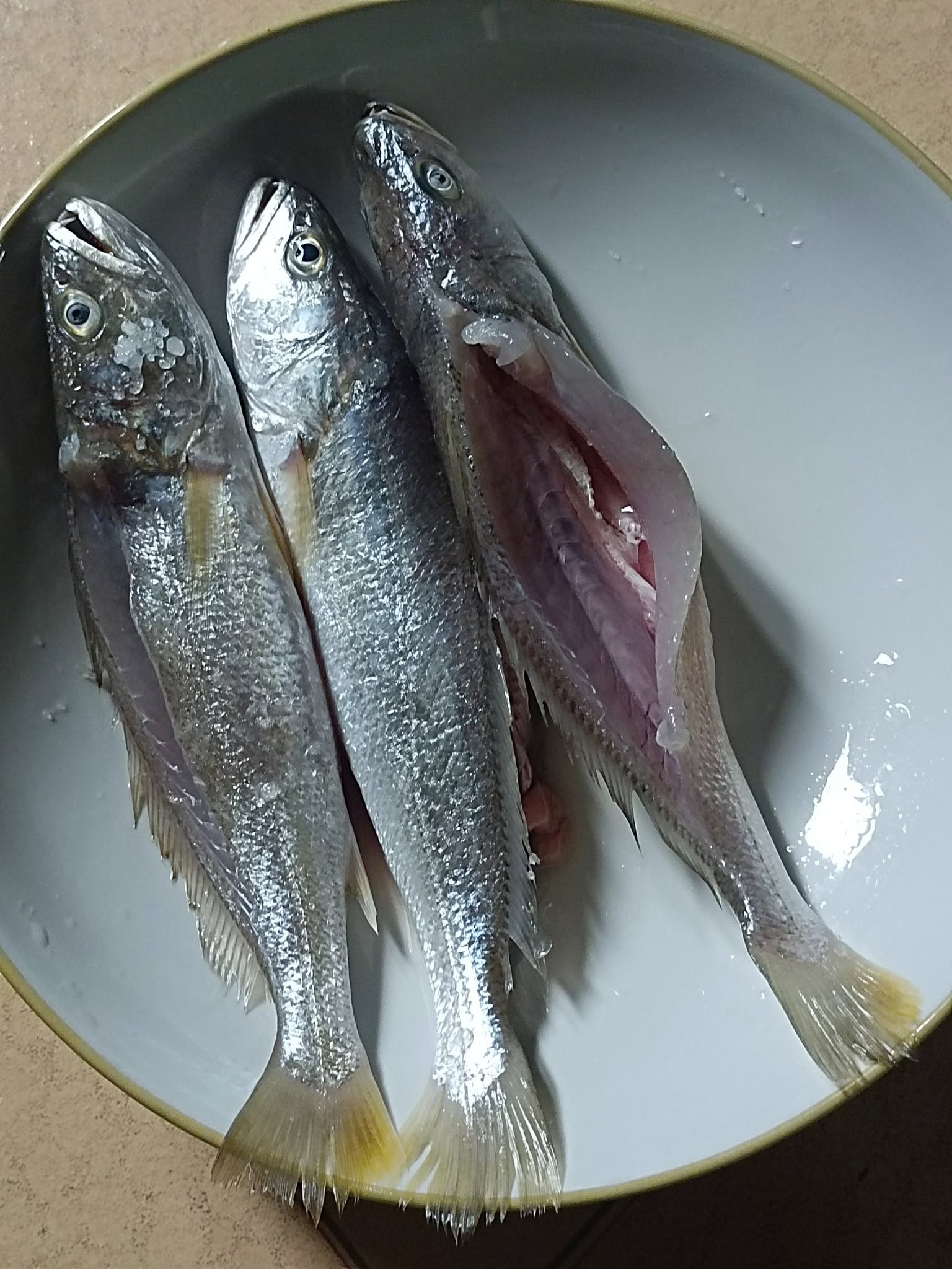 ร้านแรก ปลาสองซี่ ผมได้ปลามาสามตัวจากร้านคุณป้า(วะ) คนแขกบ้านวัดขนุน ซึ่งครอบครัวออกทะเลอ่าวไทยหาปลาด้วยการวางอวนใกล้ เกาะหนูเกาะแมว ปลาที่ได้คือ ปลาจรวดสองซี่ หรือที่เรียกสั้น ๆ ว่า “ปลาสองซี่” ชื่อนี้มาจากลักษณะเด่นของมัน คือมีฟันบนสองซี่ คำเรียกของคนพื้นถิ่นคือ “ปลาสองซี่วะ” “วะ” บอกว่าปลาเหล่านี้จับได้ตอนเช้ามืดและนำมาดองน้ำแข็งไว้ก่อนจะนำมาขายในตลาดเช้า ราคาไม่แพงเพียงกิโลกรัมละ 50 บาท ผมซื้อมาสามตัวในราคา 30 บาท และ “วะ” ก็แนะนำว่าให้เจาะหลังอับเกลือแล้วทอด ผมเห็นด้วยแก่ก็จัดการ ใช้มือดึงเหงือกออก เจาะหลังให้เสร็จสรรพ โดยไม่ต้องขูดเกล็ดออก เพราะปลาชนิดนี้เกล็ดกินอร่อย นิ่มไม่เเข็ง และแนะนำว่ากลับถึงบ้านให้ล้างแล้วทอดทันที หรือจะถนอมอาหารด้วยการแช่ตู้เย็นไว้ให้ความเค็มซึมเข้าตัวปลาก็ได้
